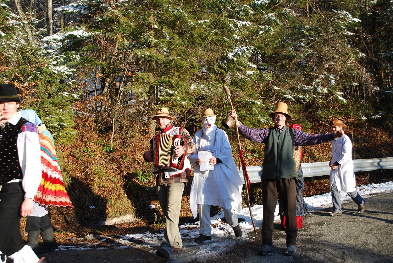 Maskirani liki naj bi predstavljali duhove umrlih, ki se v dolgih nočeh po zimskem solsticiju vračajo med žive, po ljudskem prepričanju pa naj bi predstavljali družino s spremljevalci, ki zaradi revščine prosi za denar. Obhodi maskirancev v času zimskega solsticija so znani tudi drugod po Evropi.