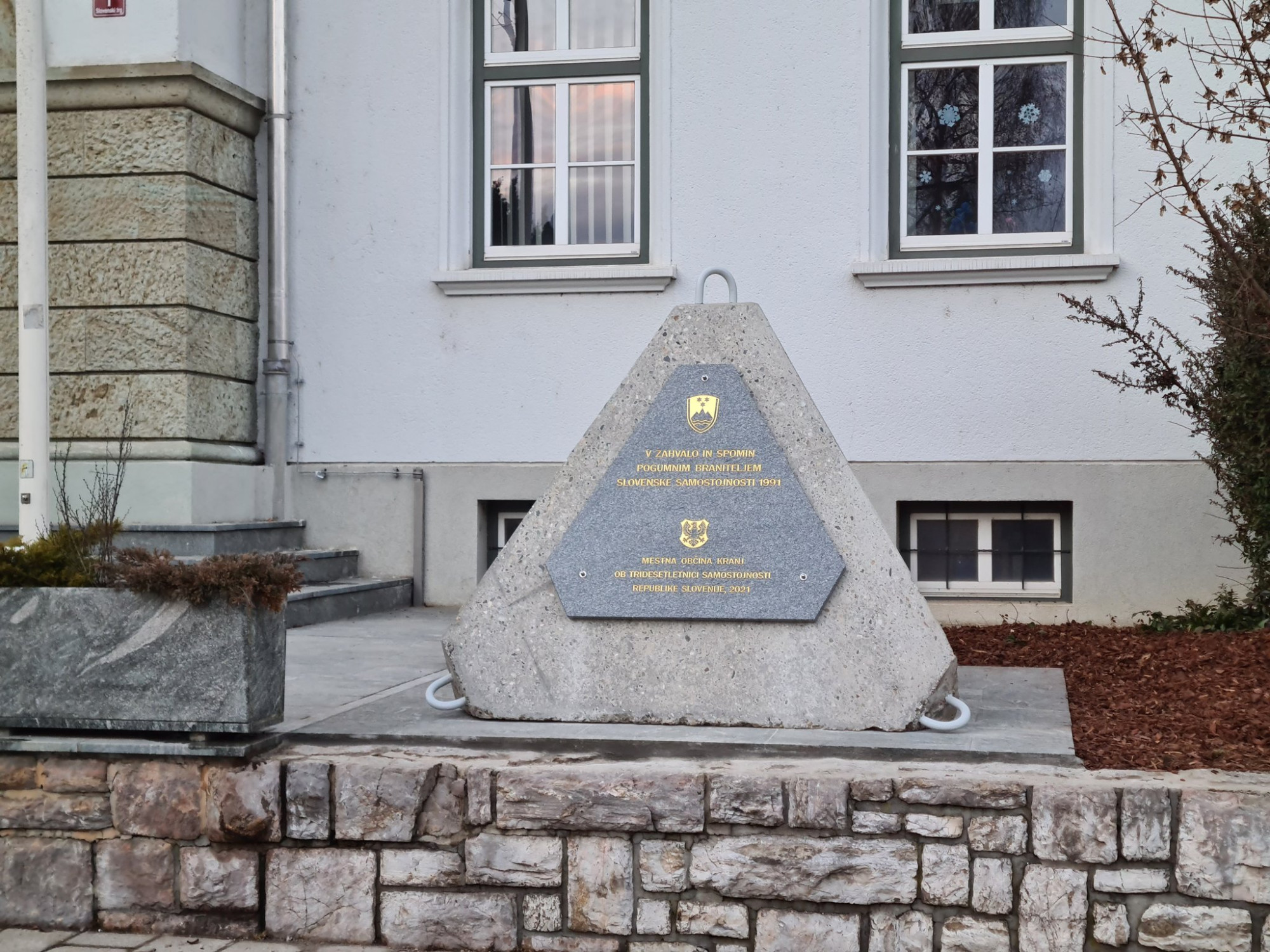 Pred kranjsko občino odkrili obeležje samostojni Sloveniji