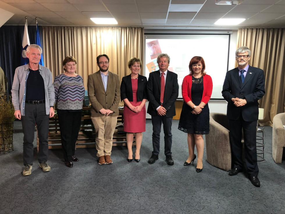 Franc Just, zagovornica Erika Köleš Kiss, Dušan Mukič, predsednica Zveze Slovencev Andrea Kovács, Marij Čuk, generalna konzulka Metka Lajnšček in veleposlanik dr. Marjan Cencen | Avtor: Generalni konzulat Monošter