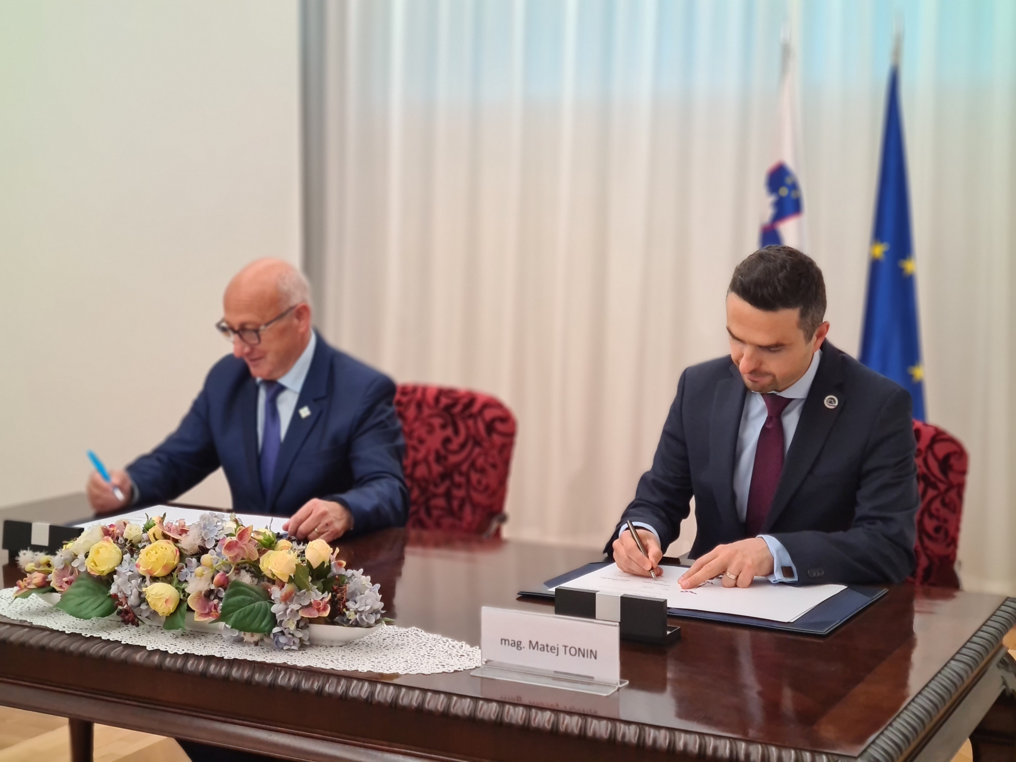 Predsednik Olimpijskega komiteja Slovenije – Združenja športnih zvez Bogdan Gabrovec in minister za obrambo mag. Matej Tonin | Avtor: Monika Sušanj