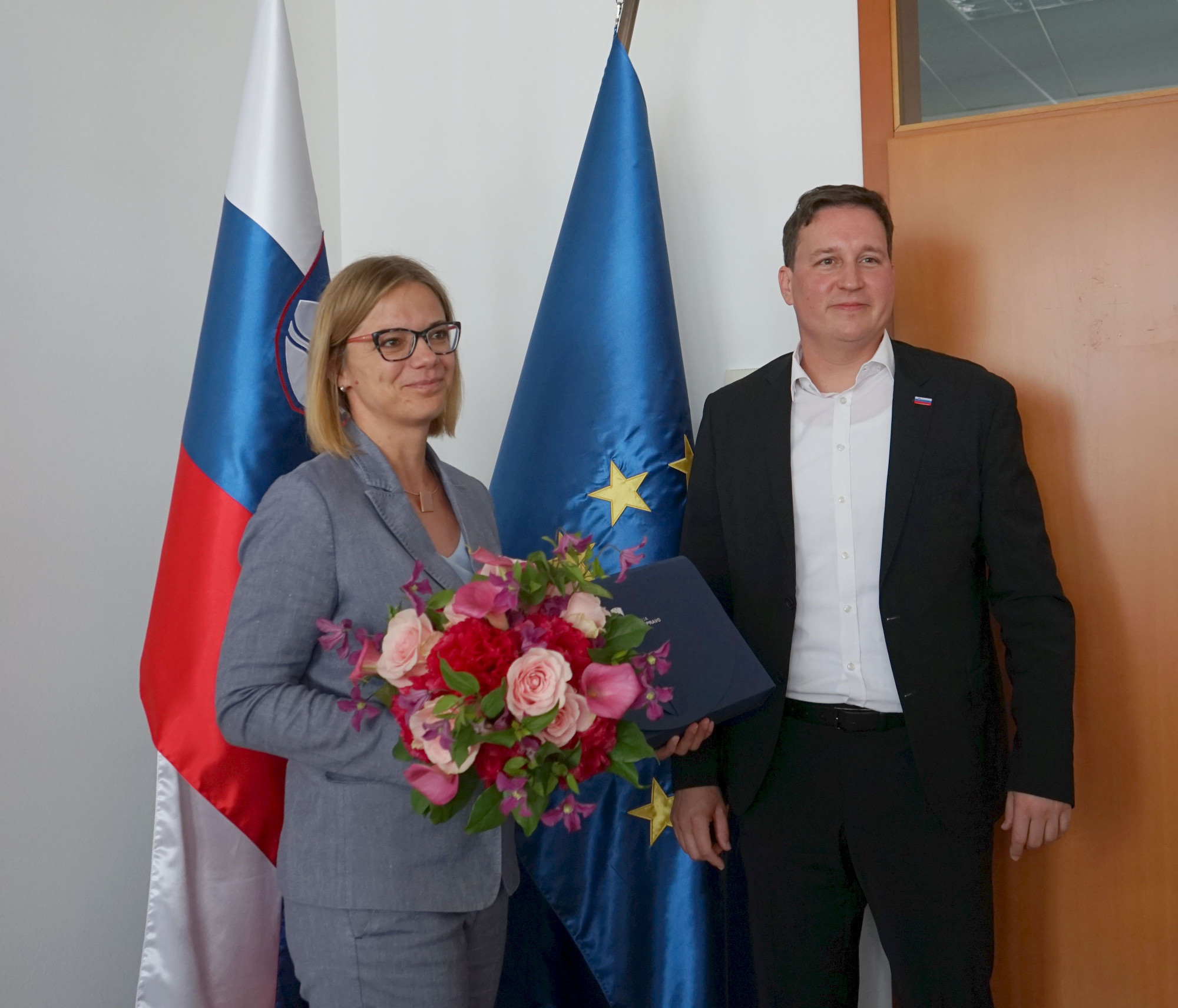 Po primopredaji poslov se je ministrica skupaj z državnima sekretarjema Juretom Trbičem in Urbanom Kodričem že srečala z generalnimi direktorji direktoratov in vodji služb na ministrstvu.