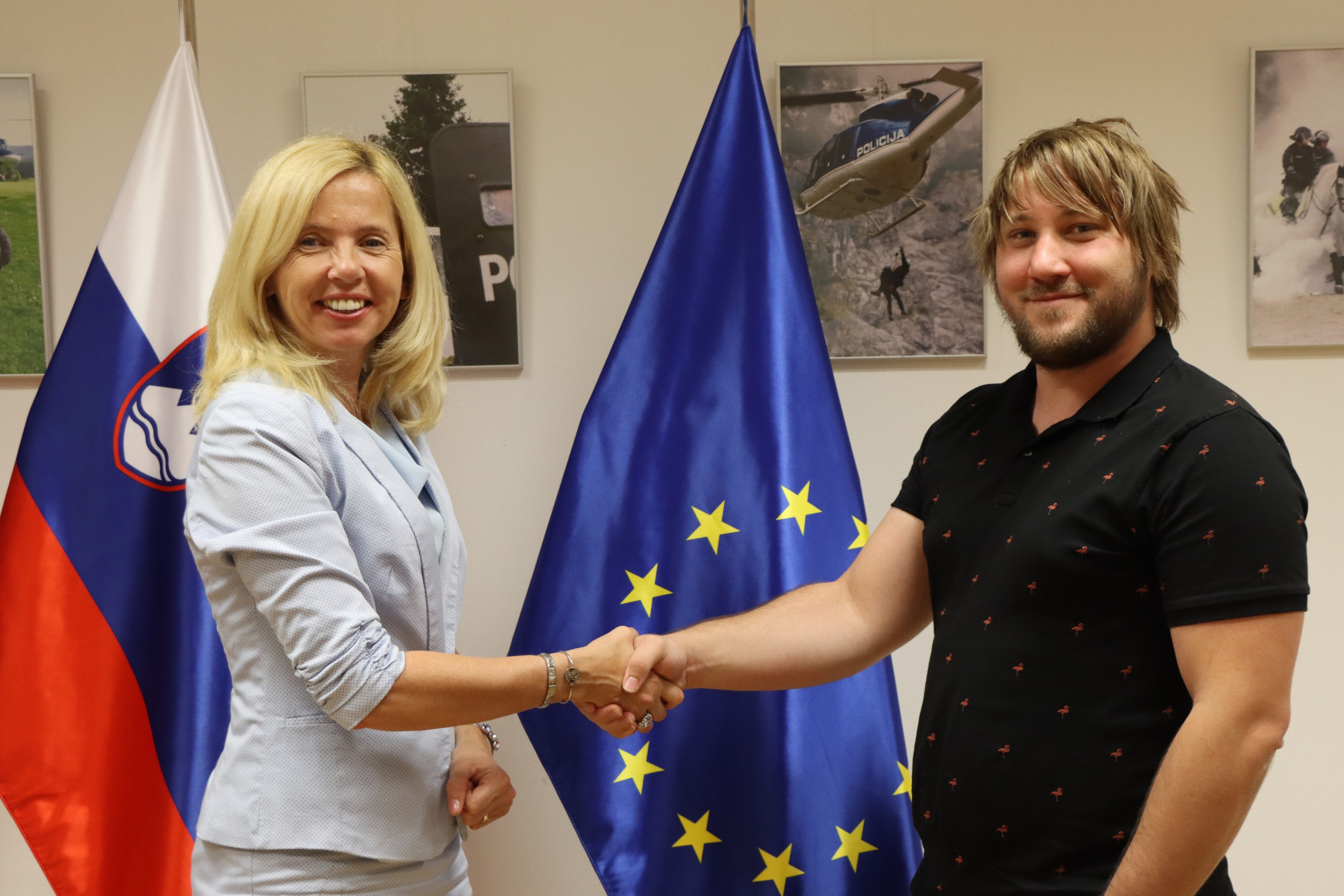 Ministrica mag. Tatjana Bobnar in predsednik Mladinskega sveta Slovenije Miha Zupančič | Avtor: Ministrstvo za notranje zadeve