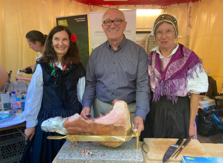 Obiskovalci so bili navdušeni nad ročno rezanim kraškim pršutom, orehovo in pehtranovo potico ter nad ponudbo slovenskih penin.