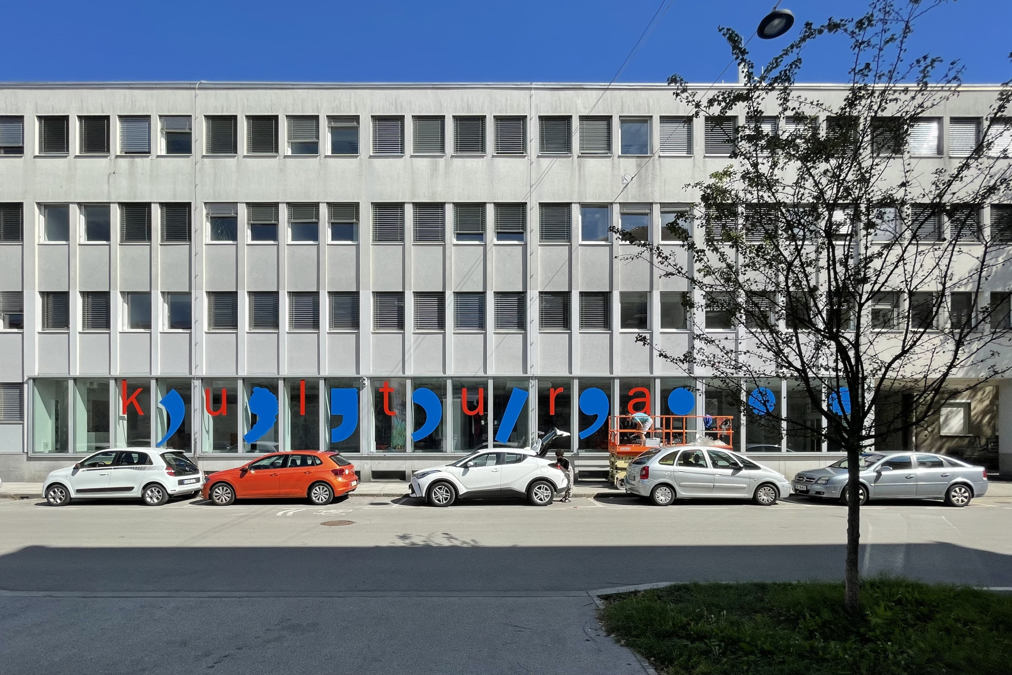 Napis, ki je bil prvotno nameščen na okna v pritličju stavbe na Maistrovi 10 pred skoraj dvema desetletjema, nato pa januarja 2021 odstranjen, ima za ustvarjalce in ustvarjalke na kulturnem področju simbolni pomen: črke sestavljajo besedo kultura, ki združuje celotni sektor, ločila med njimi pa predstavljajo različna področja ustvarjanja in delovanja, področja, ki se tudi nenehno razvijajo in širijo, kar ponazarja tropičje na koncu napisa.