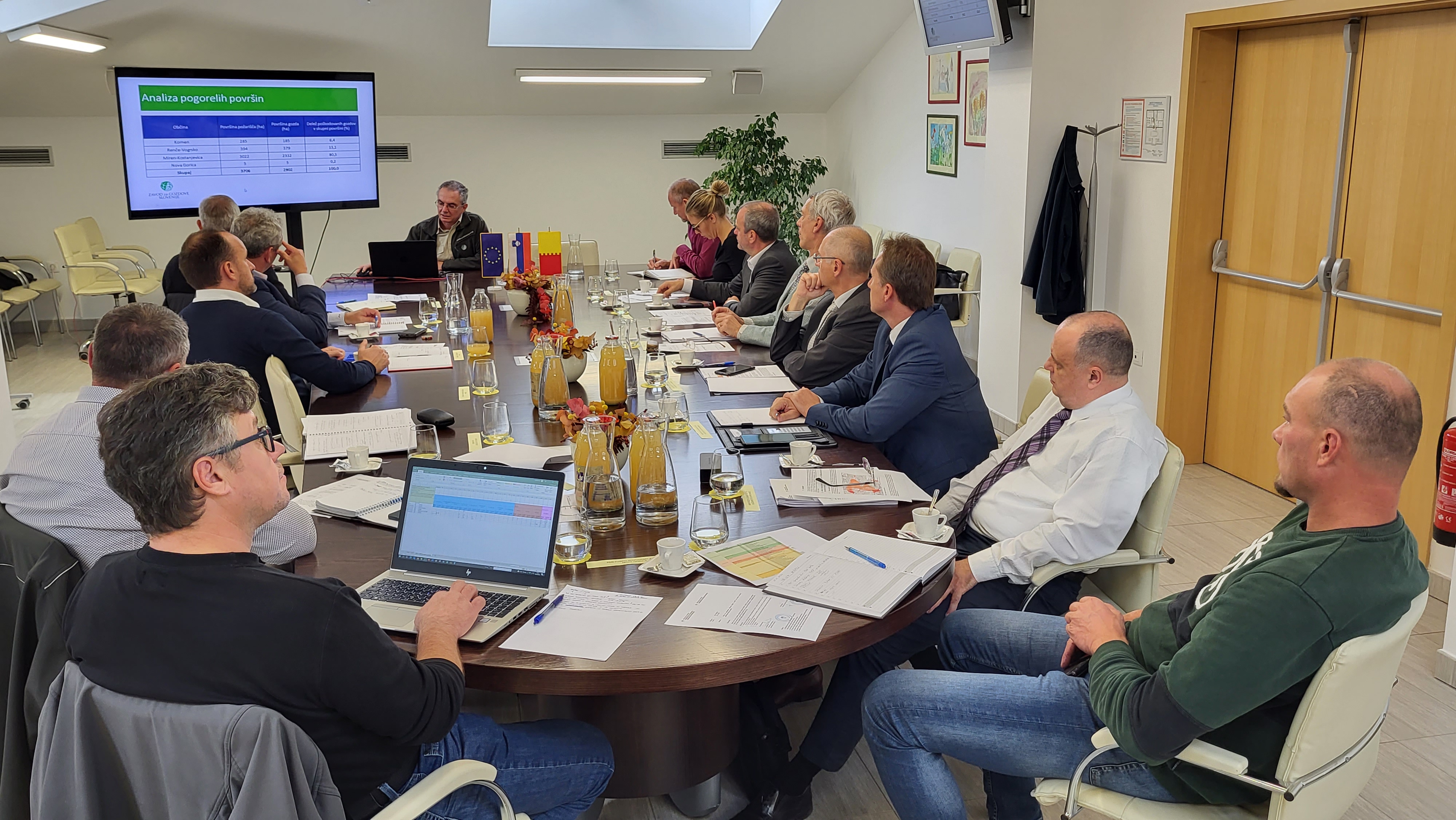 Državni sekretar dr. Darij Krajčič in minister za okolje in prostor Uroš Brežan sta na današnjem sestanku prisluhnila predstavnikom občin župani občin Miren – Kostanjevica, Renče – Vogrsko in Komen in Zavoda za gozdove Slovenije (ZGS), ki so jima predstavili razsežnosti požara na tem območju, zaradi katerega je bil od 17. 7. 2022 do 1. 8. 2022 aktiviran tudi Državni načrt zaščite in reševanja ob velikem požaru v naravnem okolju.