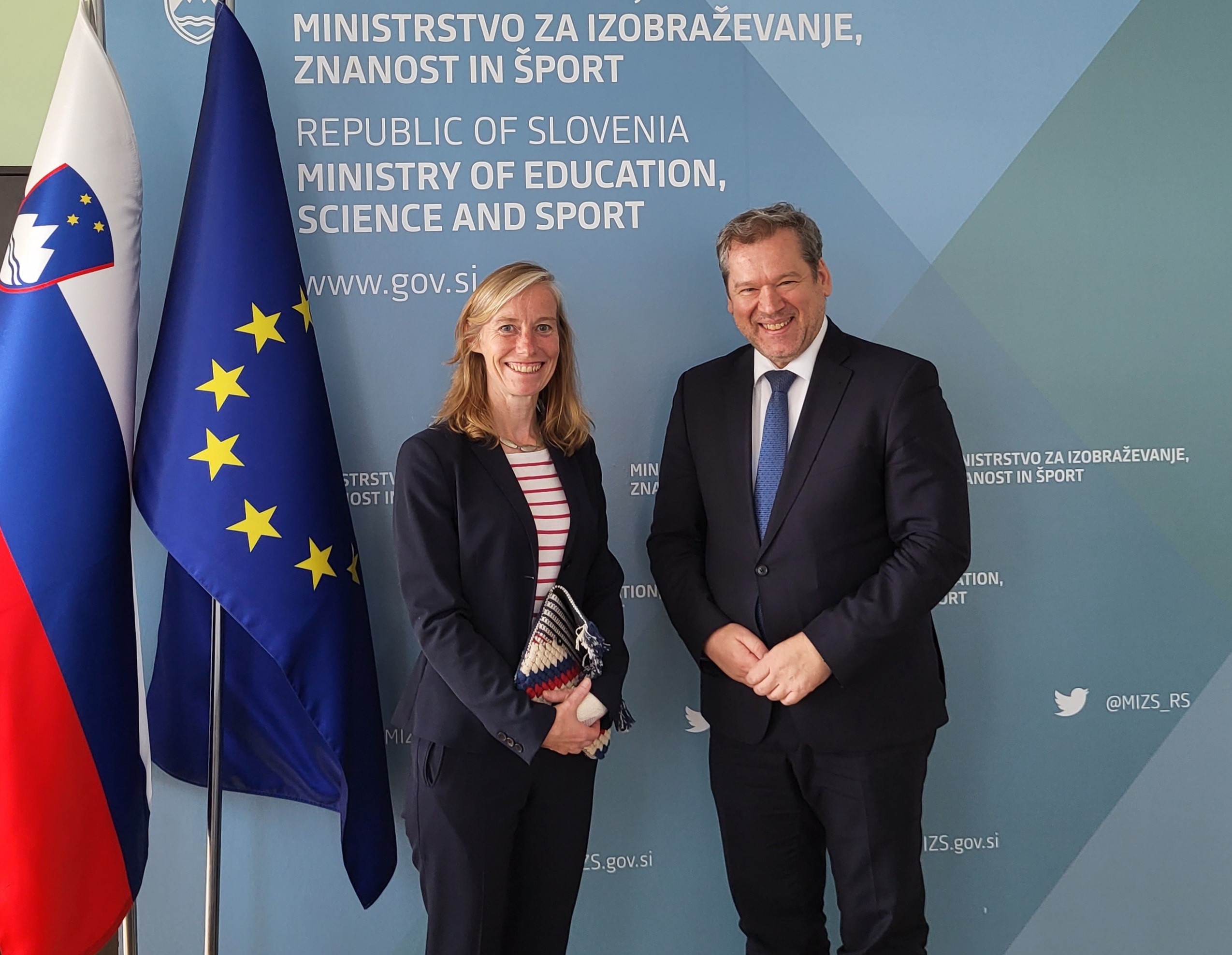 Minister za izobraževanje, znanost in šport dr. Igor Papič je na spoznavnem srečanju sprejel veleposlanico Združenega kraljestva Velike Britanije in Severne Irske Tiffany Sadler.
