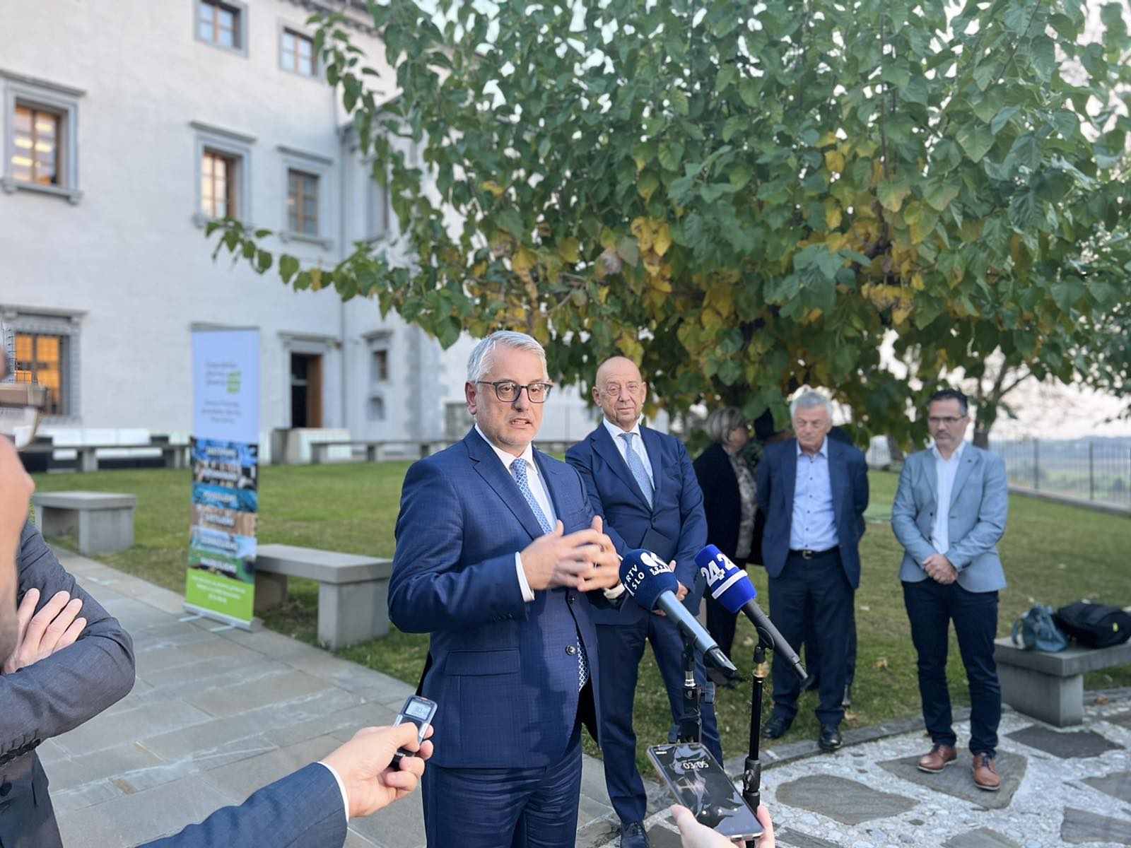 Minister Matjaž Han na izjavi za medije po srečanju s primorskimi gospodarstveniki