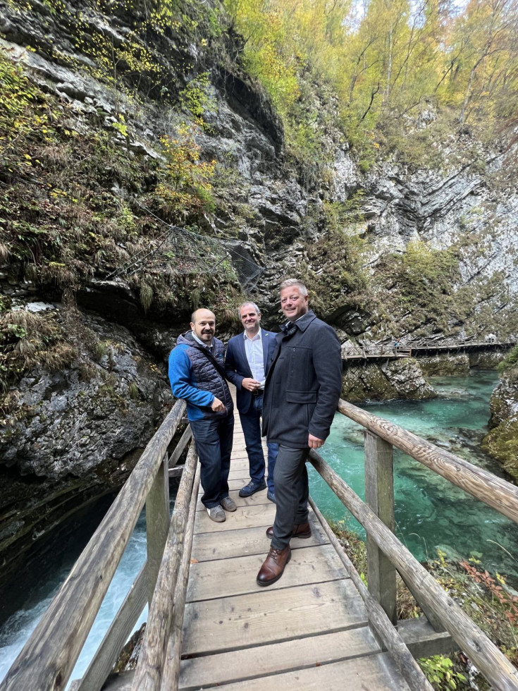 Minister Uroš Brežan si je s Petrom Torkarjem, županom Občine Gorje, in Janezom Poklukarjem, predsednikom Turističnega društva Gorje, ogledal Sotesko Vintgar, čemur je sledil sestanek na temo rabe naravnih vrednot ter zaščite vodnih virov in določitve vodovarstvenih območij (VVO).