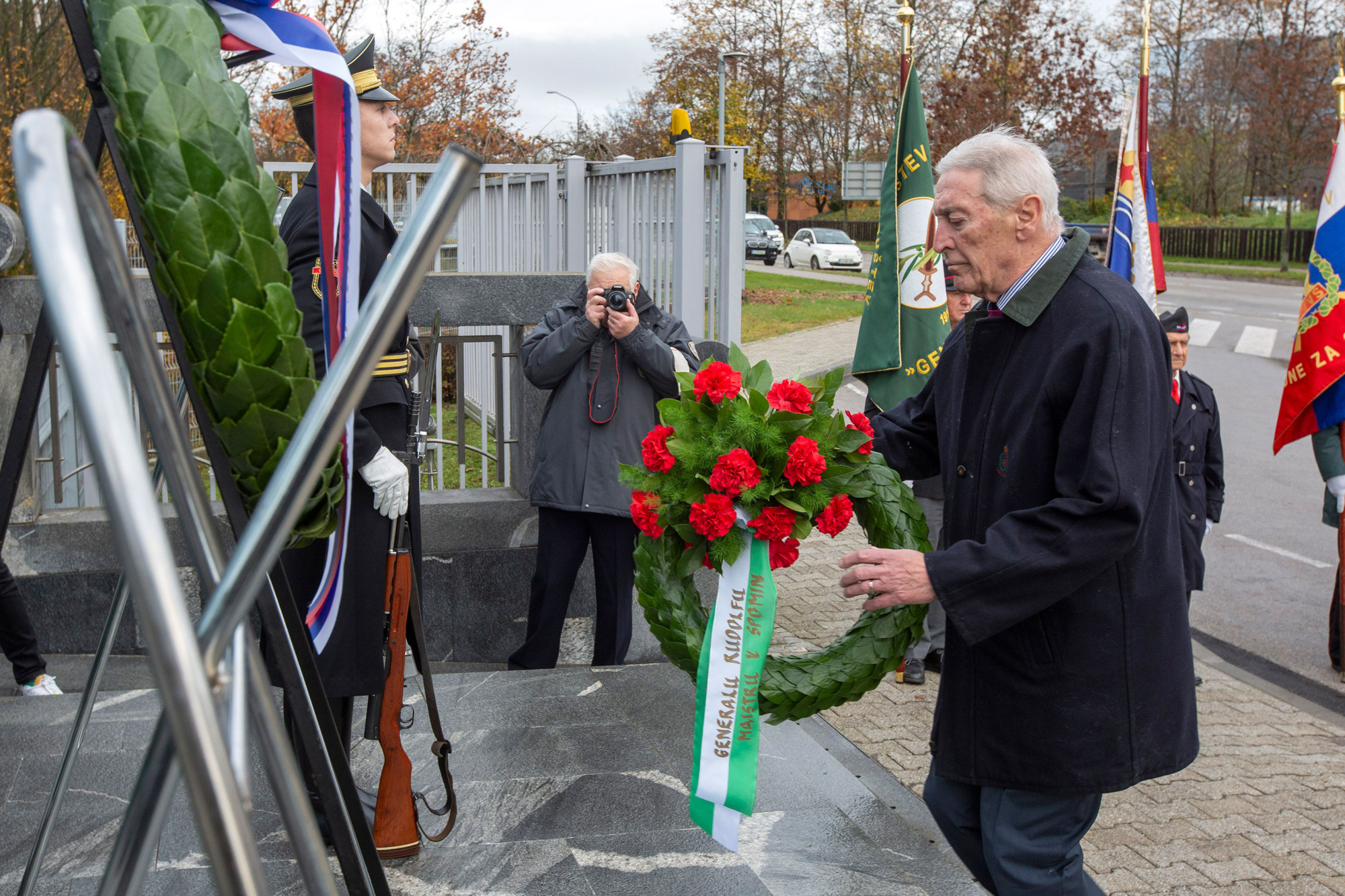 Ob današnjem državnem prazniku, dnevu Rudolfa Maistra, ki ga v Sloveniji obeležujemo od leta 2005, smo pred spomenikom generalu na Vojkovi ulici v Ljubljani pripravili krajšo slovesnost s polaganjem vencev | Avtor: Bruno Toič