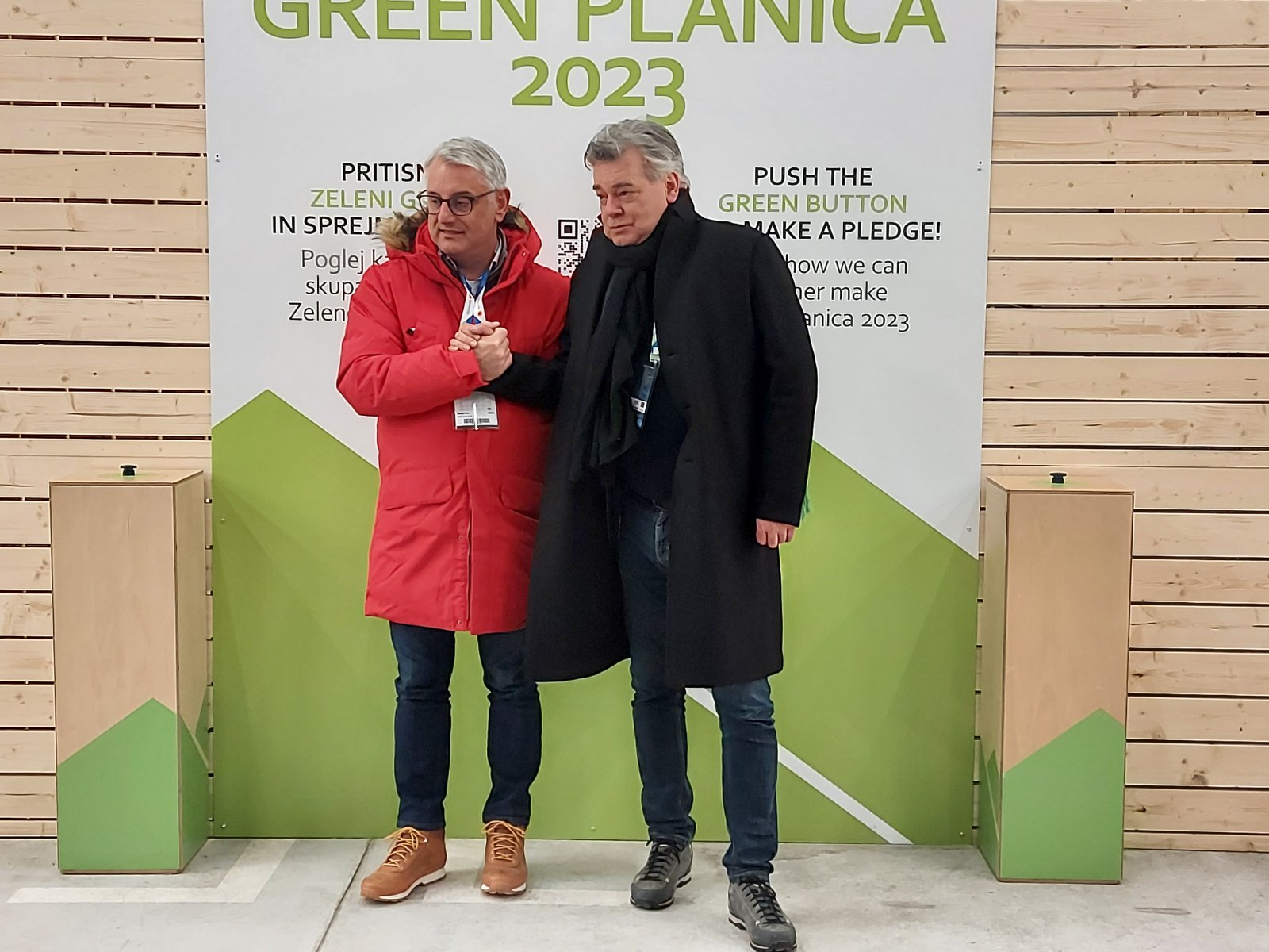 Minister za šport Matjaž Han z avstrijskim vice kanclerjem in ministrom za šport Wernerjem Koglerjem na neformalnem srečanju v Planici