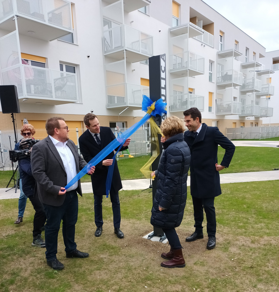 Ulico in blokovsko naselje so poleg Simona Maljevca slavnostno otvorili tudi župan Mestne občine Celje Matija Kovač, podžupanja občine Singen Ute Seifrid in Primož Brvar, direktor družbe Nepremičnine Celje.