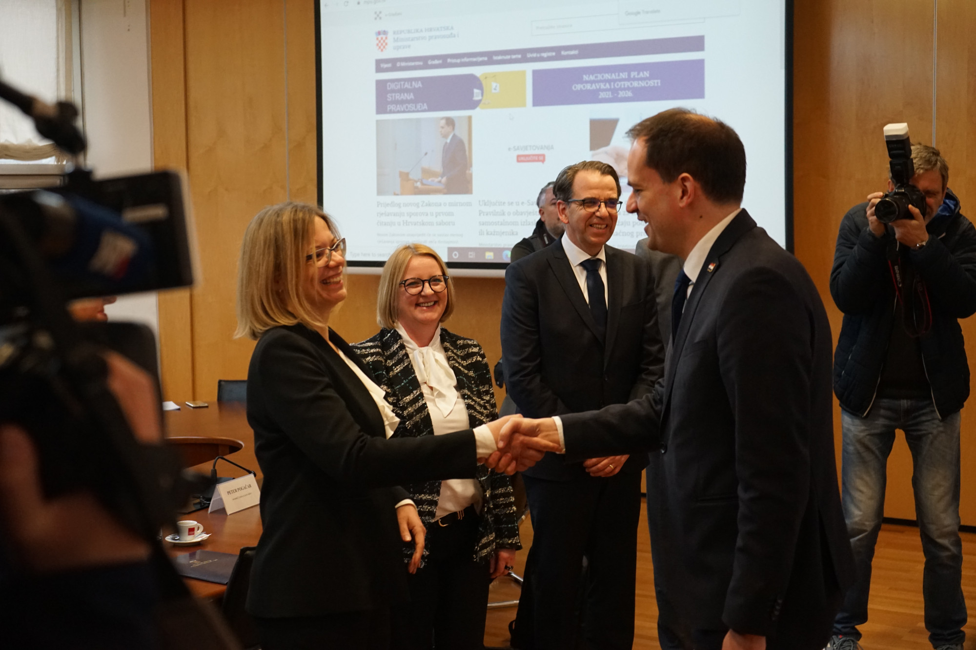 Ministrica Sanja Ajanović Hovnik je z zanimanjem prisluhnila predstavitvi projektov uvajanja kakovosti v hrvaško javno upravo ter optimizaciji in standardizaciji poslovnih procesov, še posebej pa so jo zanimali izvedeni ukrepi za krepitev zmogljivosti javnega sektorja na področju oblikovanja politik na podlagi dokazov v okviru področja strateškega načrtovanja v javni upravi.