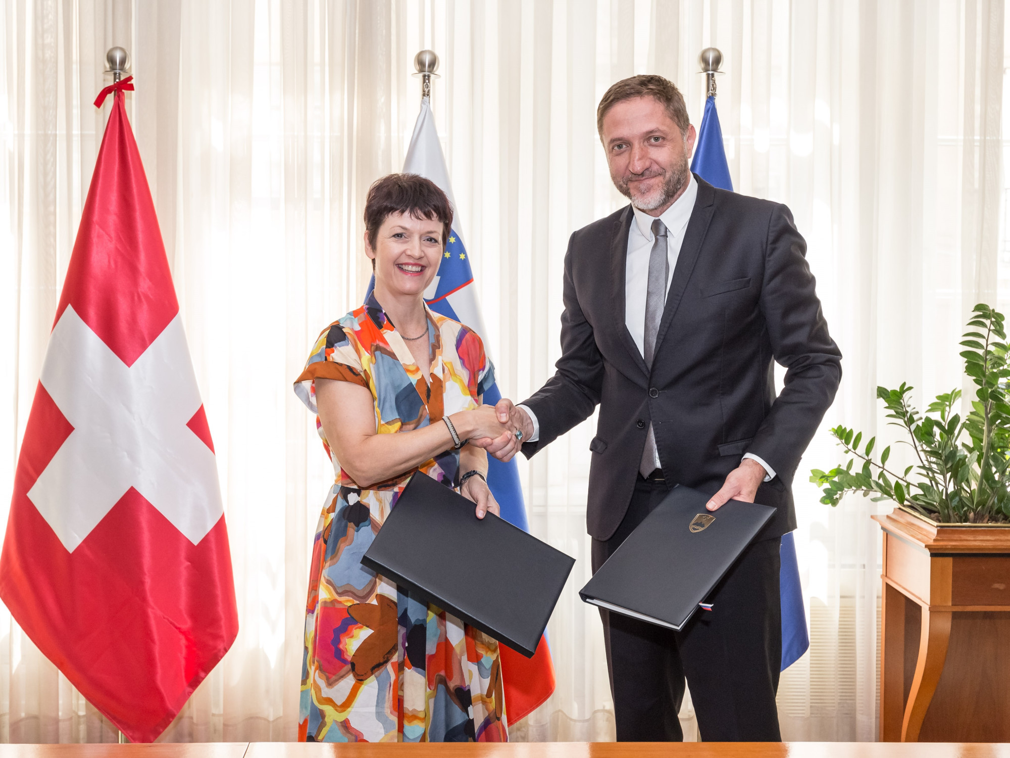 Minister Boštjančič in veleposlanica Švice v Sloveniji Gabriele Pia Schreier sta podpisala protokol o spremembah konvencije o izogibanju dvojnega obdavčenja, ki se nanaša na davke na dohodek in premoženje.