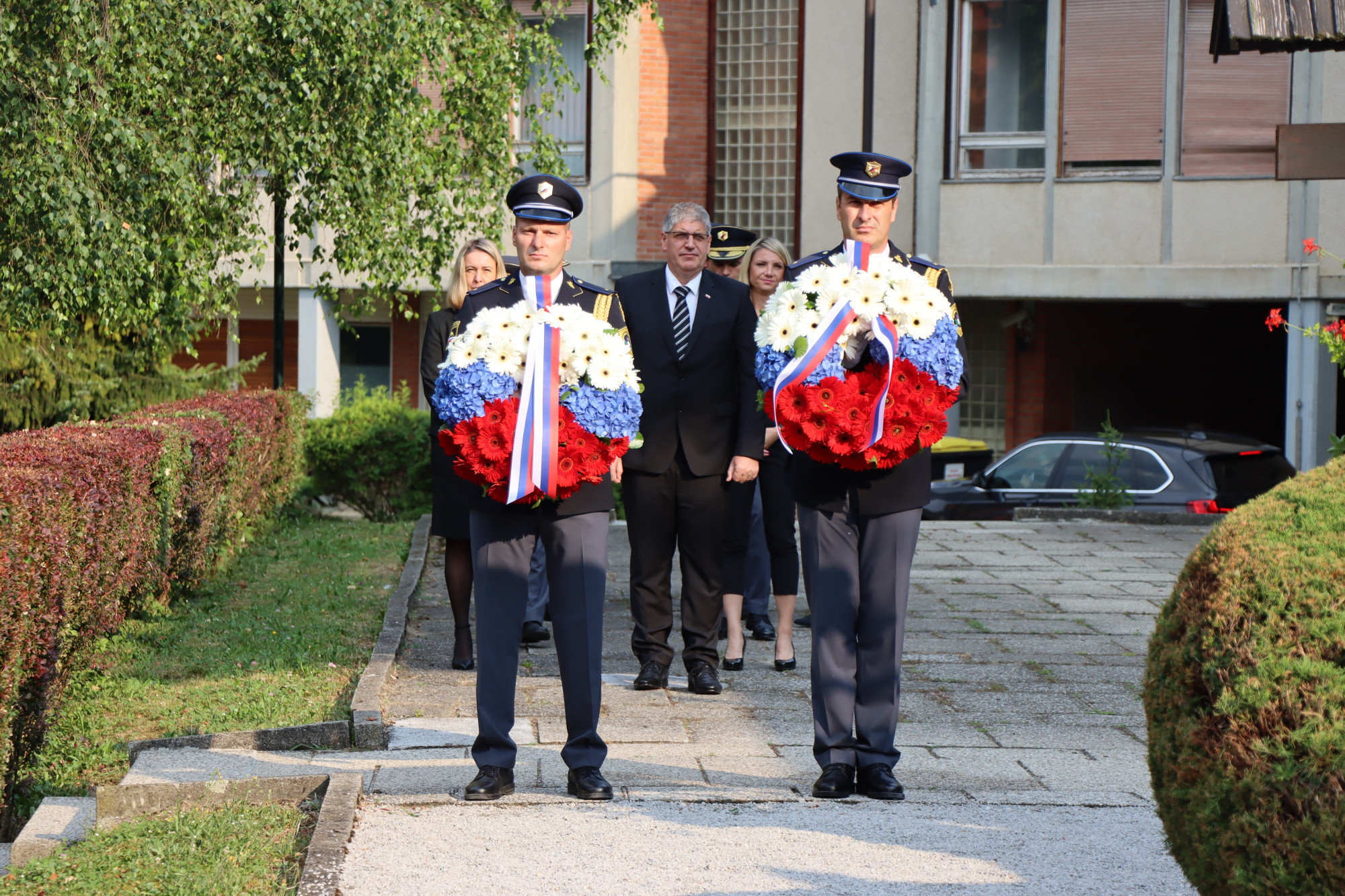V spomin na trdno odločenost policistov varovati državo in njen narod se jim je pri pomniku padlih v vojni za Slovenijo na Novih Žalah z globokim spoštovanjem poklonila delegacija Ministrstva za notranje zadeve, Policije in Zveze policijskih veteranskih društev Sever pod vodstvom ministra za notranje zadeve Boštjana Poklukarja.
