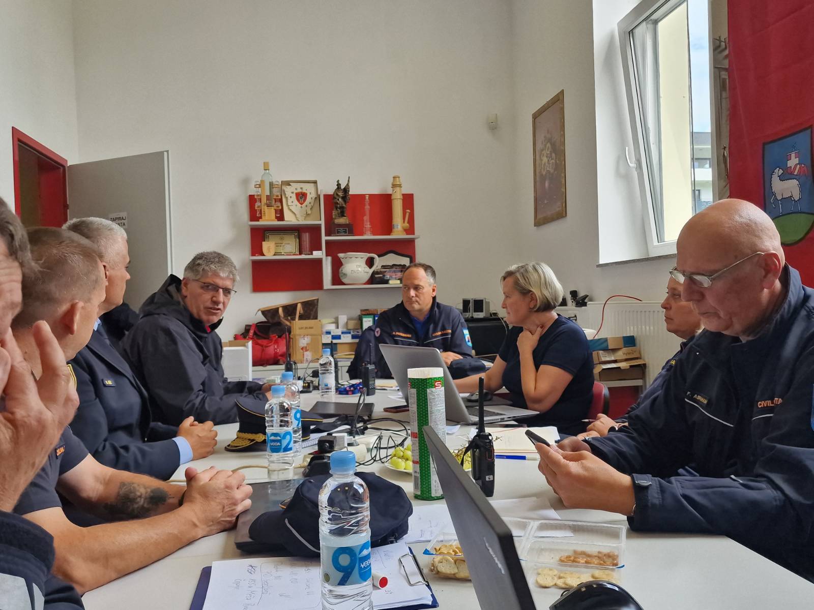 V štabu civilne zaščite se je minister seznanil s trenutnim stanjem in se pogovarjal z županom Občine Dravograd Antonom Preksavcem.