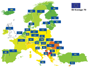 Razvitost e-uprave v Sloveniji v povprečju EU