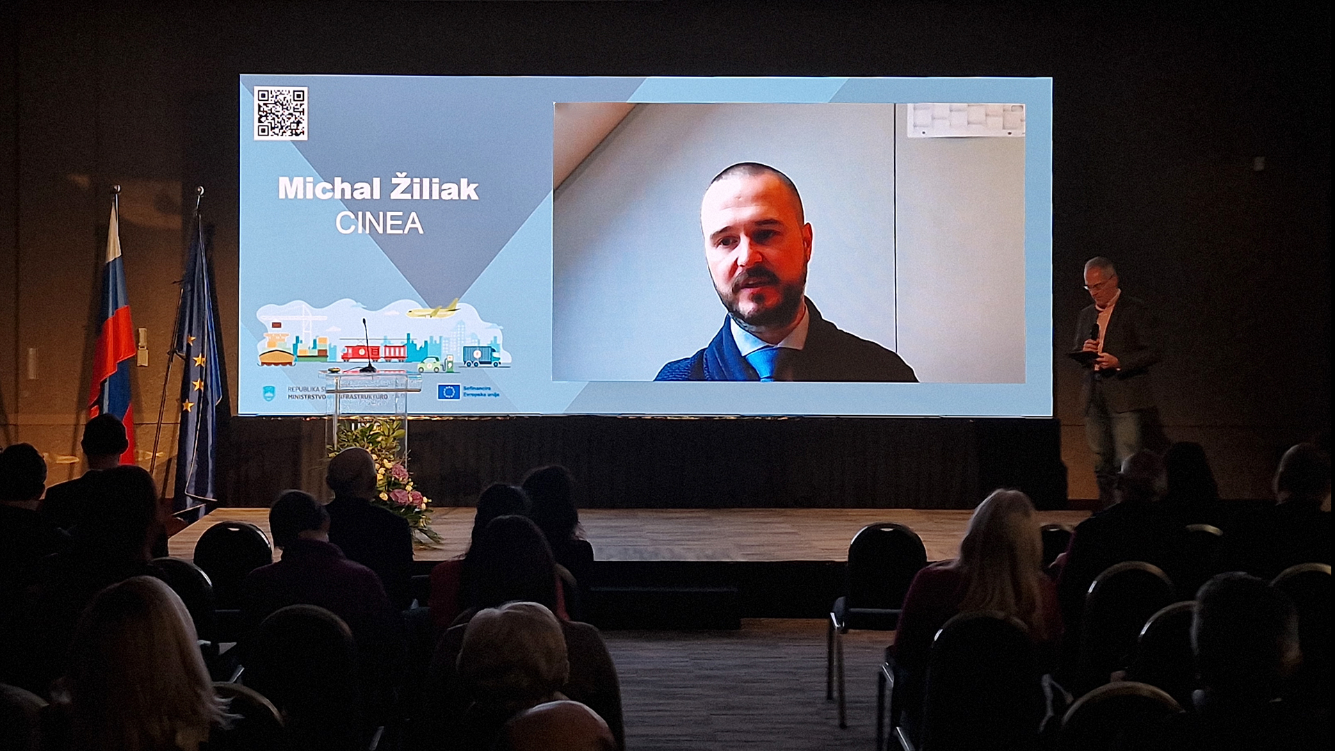 Michal Ziliak iz Evropske izvajalske agencije za podnebje, infrastrukturo in okolje (angleško European Climate, Infrastructure and Environment Executive Agency – CINEA) je predstavil prioritete, za katere so razpisana sredstva IPE Promet 2023 ter odgovarjal na vprašanja udeležencev. Po odmoru je sledil drugi del dogodka, kjer je g. Ziliak ponudil vpogled v postopke ocenjevanja in potrjevanja prejetih vlog na razpisih IPE Promet 2023.