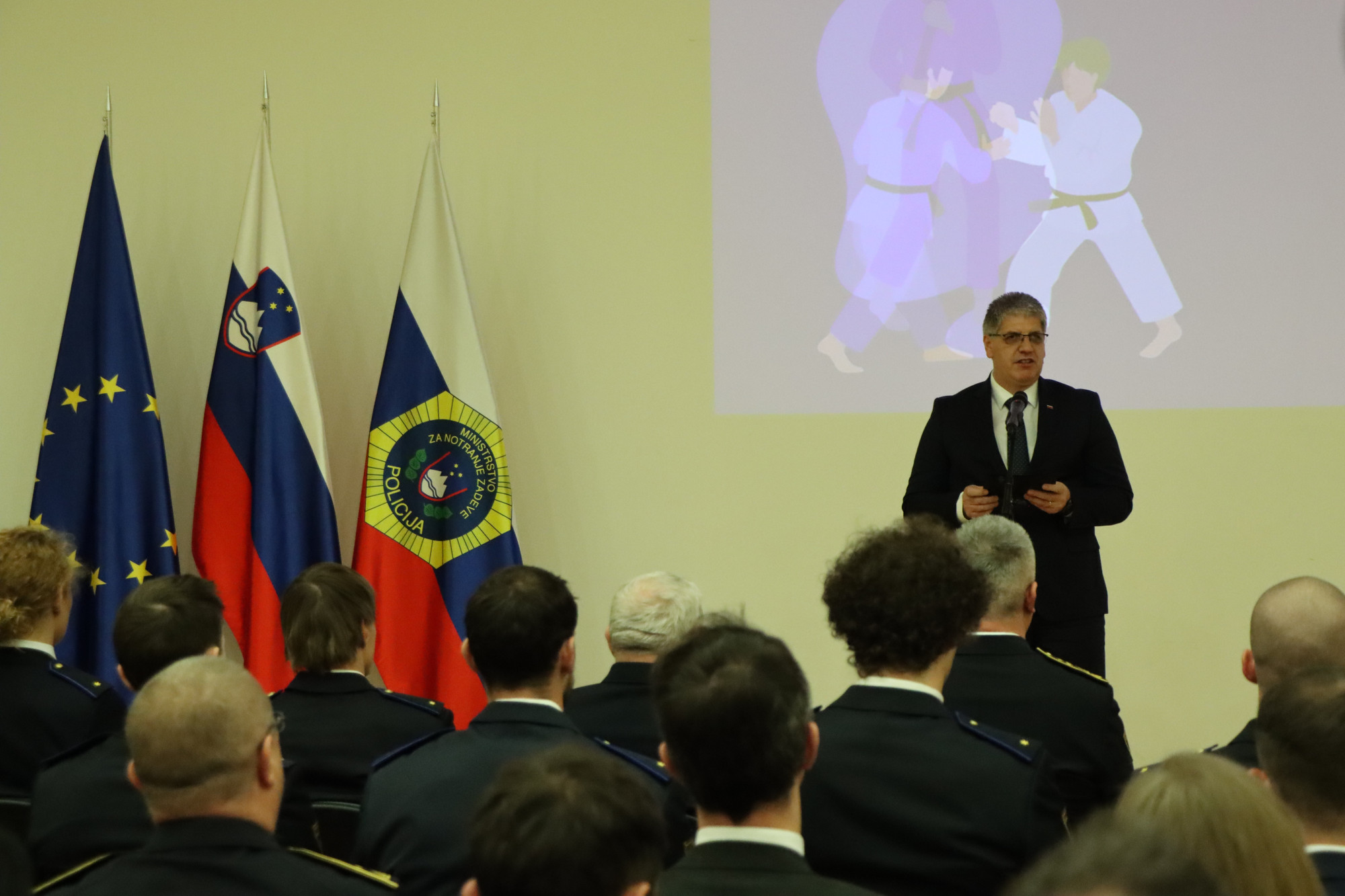 Zbrane je nagovoril tudi generalni direktor policije mag. Senad Jušić. Poudaril je, da so nam športniki in športnice v modri uniformi s svojimi dosežki pomemben zgled. Uspešno prenašajo zdrav življenjski slog na ostale zaposlene policiji, kar dokazujejo številni sodelavci, ki se tudi sami športno udejstvujejo in dosegajo odlične rezultate na državnih prvenstvih in tudi širše, v mednarodnem okolju: "Na ta način vsi skupaj krepite tudi ugled policije. /.../ Poleg tega pa je to, da vi kot športniki oblečete policijsko uniformo, za nas najboljši način približevanja naše ustanove ljudem. To, kar želimo sporočiti, se z vašo pomočjo dvakratno zapiše v ljudski spomin."