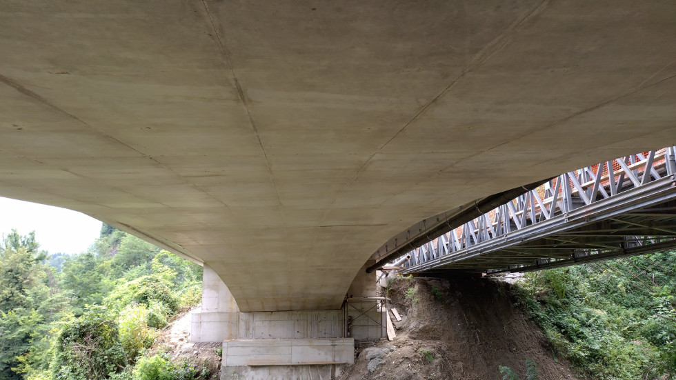 Na opornem zidu nad cesto se izvaja dobetoniranje v izmeničnih kampadah. Zaključena pa je že končna prevezava vodovoda, pritrjenega na novo mostno konstrukcijo.