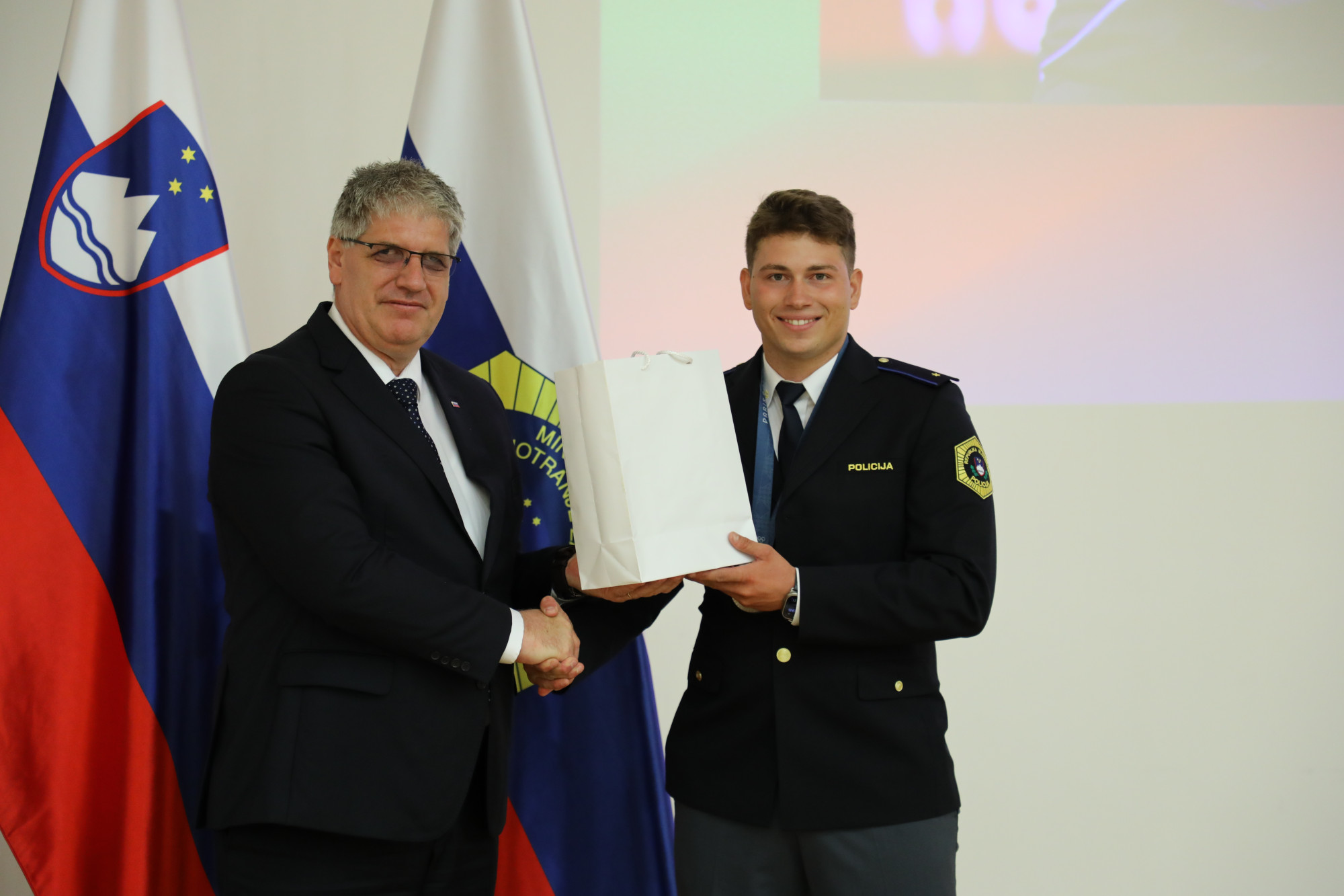 Minister za notranje zadeve je vsem skupaj in vsakemu posebej čestital ter dodal, da smo na ministrstvu, policiji in inšpektoratu najbolj zvesti navijači in podporniki vrhunskih športnic in športnikov. »Vemo, da je vsak vaš dosežek prigaran, da v vrhunskem športu ni naključij in ni nič podarjenega. Umirjenost, sproščenost in dobra psihična pripravljenost pa so prvi pogoj za trdo delo, ki prinese rezultate. Noben športnik pa ne pride na vrh sam. Tu so njegova družina in prijatelji, so predani trenerji, močne in povezane ekipe, klubi in zveze. Ko vsi skupaj odlično in profesionalno opravijo svoje delo, takrat prav vi, spoštovane športnice in športniki, premagate najboljše! In to ste dokazali tudi na letošnjih Olimpijskih igrah v Parizu, kjer je skupaj z vami dihala vsa Slovenija.« Športnikom je zaželel bogato športno pot še naprej – tudi na naslednjih poletnih olimpijskih igrah v Los Angelesu leta 2028 – in nove mejnike v vrhunskem športu, ki jih bodo postavili.