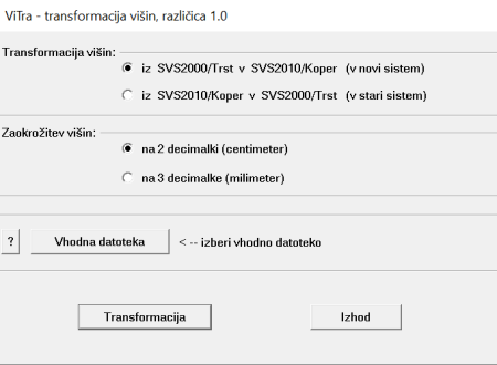 Na voljo je tudi brezplačni program ViTra za transformacijo prostorskih podatkov (višin) v nekaterih bolj razširjenih formatih (shp, csv, txt, xyz).