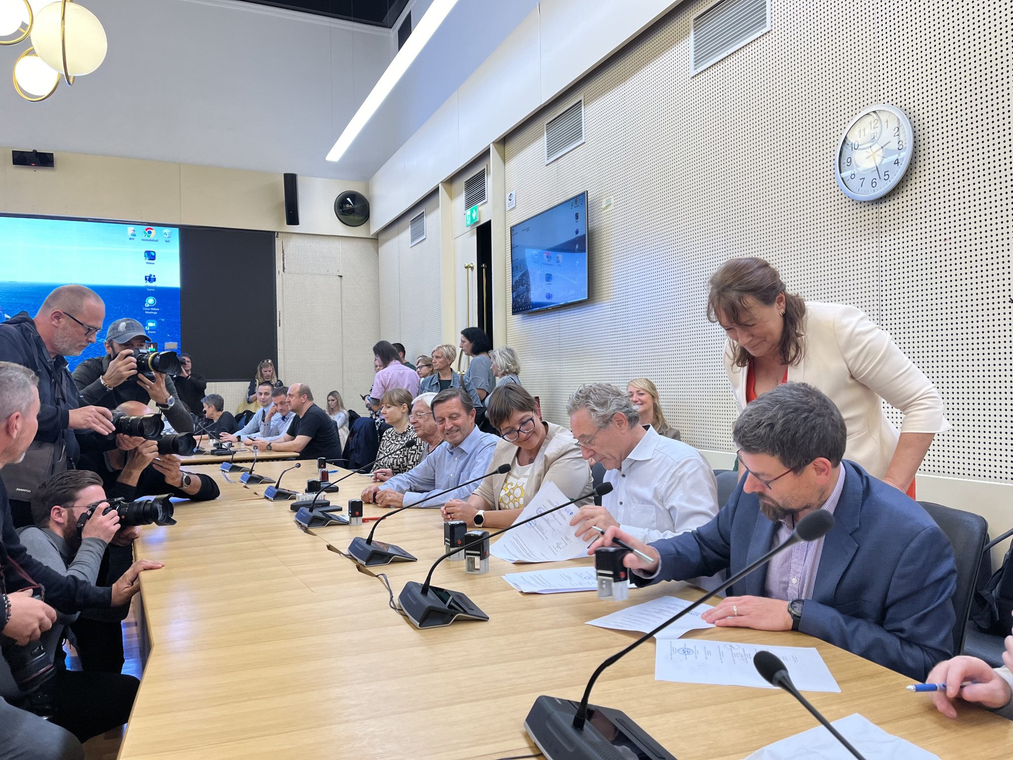 Vlada in sindikati javnega sektorja so podpisali izjavo o stopnji usklajenosti predloga novega plačnega zakona, s katerim bi določili temeljna pravila na področju plač od 1. januarja 2025 | Avtor: STA: Bostjan Podlogar