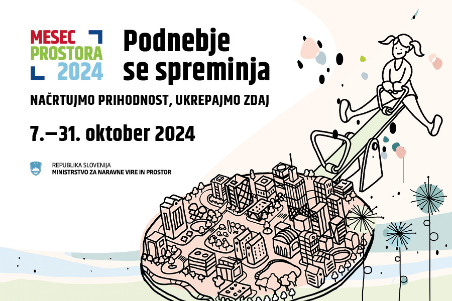 Na vse našteto bo opozarjal tudi letošnji Mesec prostora 2024, ki poteka že enajsto leto zapored, in tekom katerega se bodo po vsej Sloveniji vrstili dogodki z osrednjim sloganom »Podnebje se spreminja, načrtujmo prihodnost, ukrepajmo zdaj«. Konference, razstave, izobraževanja in delavnice ter drugi dogodki so namenjeni najrazličnejšim ciljnim skupinam – ne le strokovni javnosti, pač pa tudi najširši javnosti, tudi otrokom in mladostnikom. Vabljeni, da se dogodkov udeležite in skupaj z nami gradite trajnostno in podnebno odporno prihodnost.