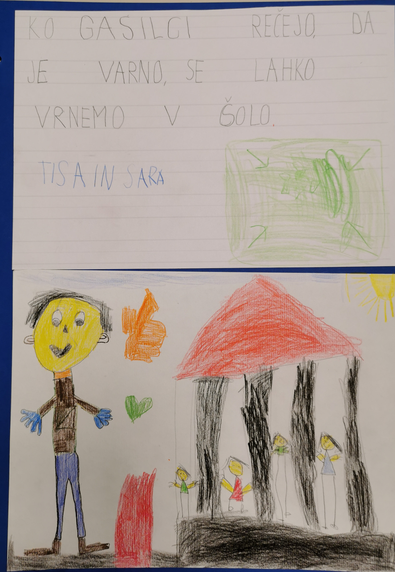 Kot zahvalo za izvedene prikaze reševalnih služb, so učenci 2.B razreda POŠ Unec izdelali vrsto likovnih izdelkov z naslovom Evakuacija.