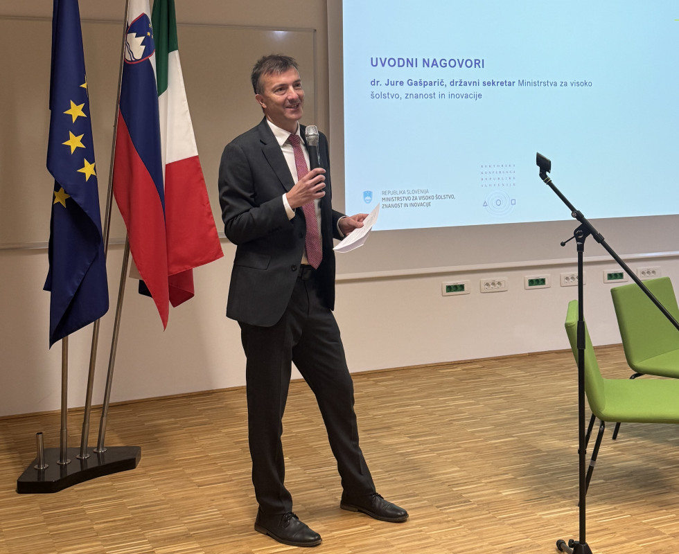 Državni sekretar dr. Jure Gašparič je v uvodnem nagovoru poudaril pomen sodelovanja, zlasti s ključnimi deležniki, kot je Rektorska konferenca Republike Slovenije, v nadaljevanju pa izpostavil, da je potrebno okrepiti konkurenčnost Evrope in spodbuditi razvijanje kompetenc prihodnosti, pri čemer nam lahko pomagajo tudi pobude kot je evropska diploma. Predsedujoča Rektorski konferenci, prof. dr. Klavdija Kutnar je v uvodnem nagovoru izpostavila tudi pomen rednega dialoga med oblikovalci politik in deležniki v visokem šolstvu in v tem kontekstu pozdravila pozitiven kakovostni razvoj pobude Platforma znanja.