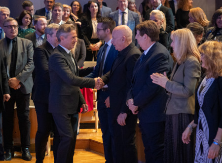 Slavnostni nagovor na podelitvi v Gallusovi dvorani Cankarjevega doma je imel predsednik Vlade Republike Slovenije dr. Robert Golob.