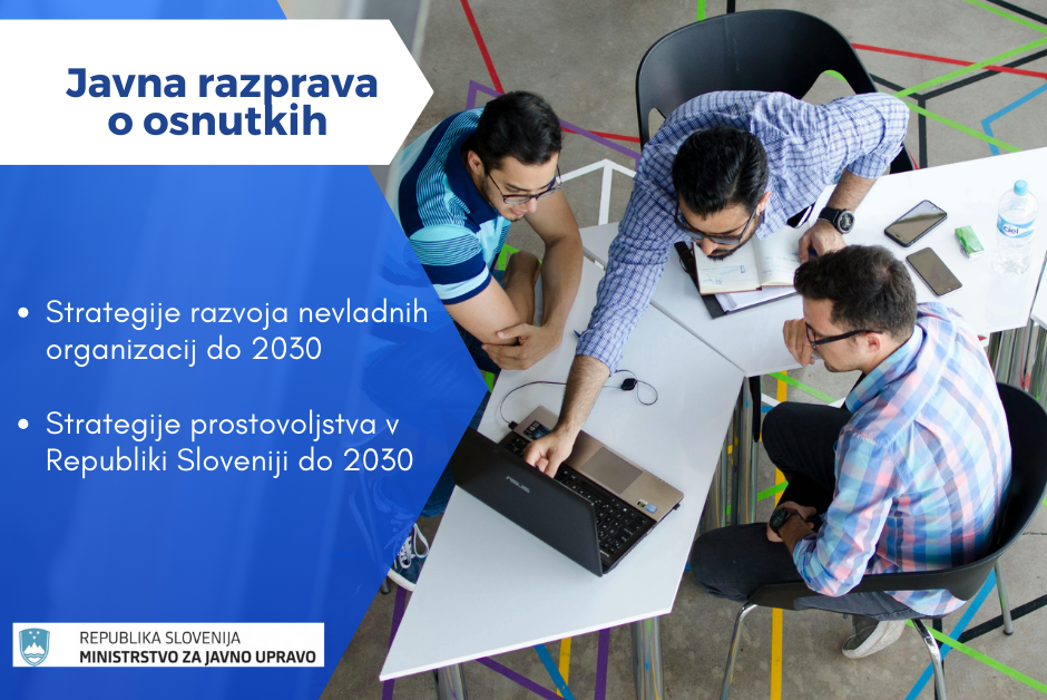 Ministrstvo za javno upravo je na podlagi 26. člena Zakona o nevladnih organizacijah pripravilo osnutek Strategije razvoja nevladnih organizacij v Republiki Sloveniji do 2030 ter na podlagi 36. člena Zakona o prostovoljstvu osnutek Strategije prostovoljstva v Republiki Sloveniji do 2030 ter ju posredovalo v javno razpravo preko portala E-demokracija.