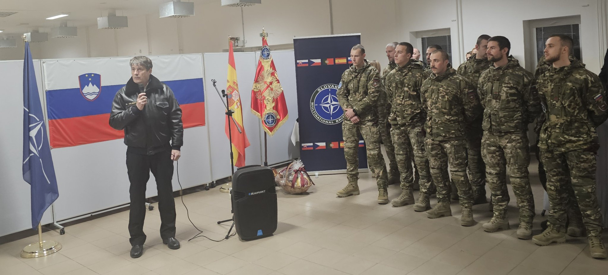 Minister mag. Sajovic je z delegacijo obiskal pripadnice in pripadnike 5. kontingenta Slovenske vojske na Slovaškem, ki v vojaški bazi Slavia deluje od junija 2022 v okviru večnacionalne Natove bojne skupine. Poleg države gostiteljice Slovaške v njej sodelujejo tudi Španija kot vodilna država, Češka, Portugalska in Slovenija. Španski poveljnik polkovnik Francisco Rodríguez je ministru in načelniku Generalštaba Slovenske vojske predstavil različne vidike delovanja bojne skupine, poveljujoča kontingentu Slovenske vojske majorka Maja Neudauer pa delovanje slovenskega kontingenta. Minister je ob obisku poudaril, da pripadnice in pripadniki slovenskega kontingenta opravljajo pomembno poslanstvo zavezniškega odvračanja in obrambe, kar prispeva k usposobljenosti Slovenske vojske. »Vaše delo prispeva h krepitvi varnosti na Slovaškem in na ravni celotnega zavezništva,« je še dejal minister ter jim čestital za profesionalnost in prizadevnost.