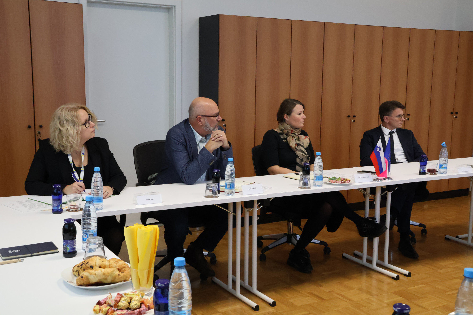 Udeleženci bilateralnega srečanja na URSIV. Andrii Gaidar, Kyrylo Zaporozhets, Nina Kovač, Serhii Prokopenko, Ivana Boštjančič Pulko, Matjaž Mravljak, Nataliya Tkachuk, Oksana Oliferenko, Anastasiia Ostrovska.
