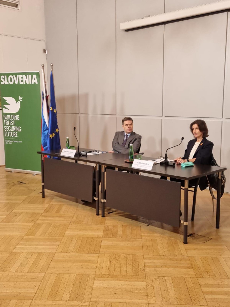 Po skoraj letu dni nestalnega članstva v Varnostnem svetu Združenih narodov je državna sekretarka Gabrič izpostavila zavezanost Slovenije k aktivnemu, odprtemu in konstruktivnemu članstvu, ki si prizadeva za preseganje razlik med članicami. Ponovila je zavezo Slovenije multilateraleralizmu in spoštovanju mednarodnega prava, katerega jedro je Ustanovna listina Organizacije združenih narodov (OZN).