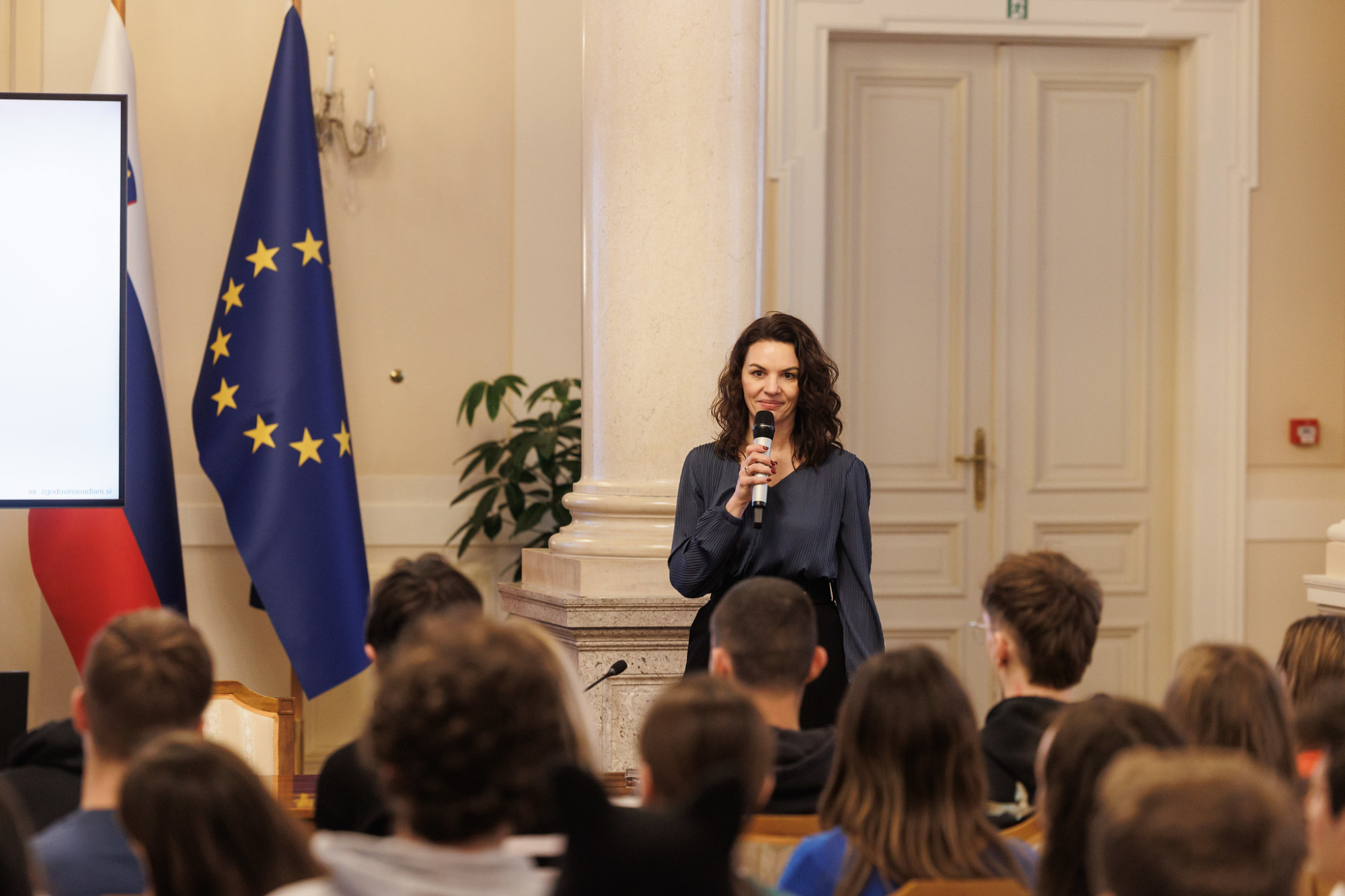 Monika Pintar Mesarič je dijakom predstavila delo Ministrstva za infrastrukturo. | Avtor: Nebojša Tejić/STA