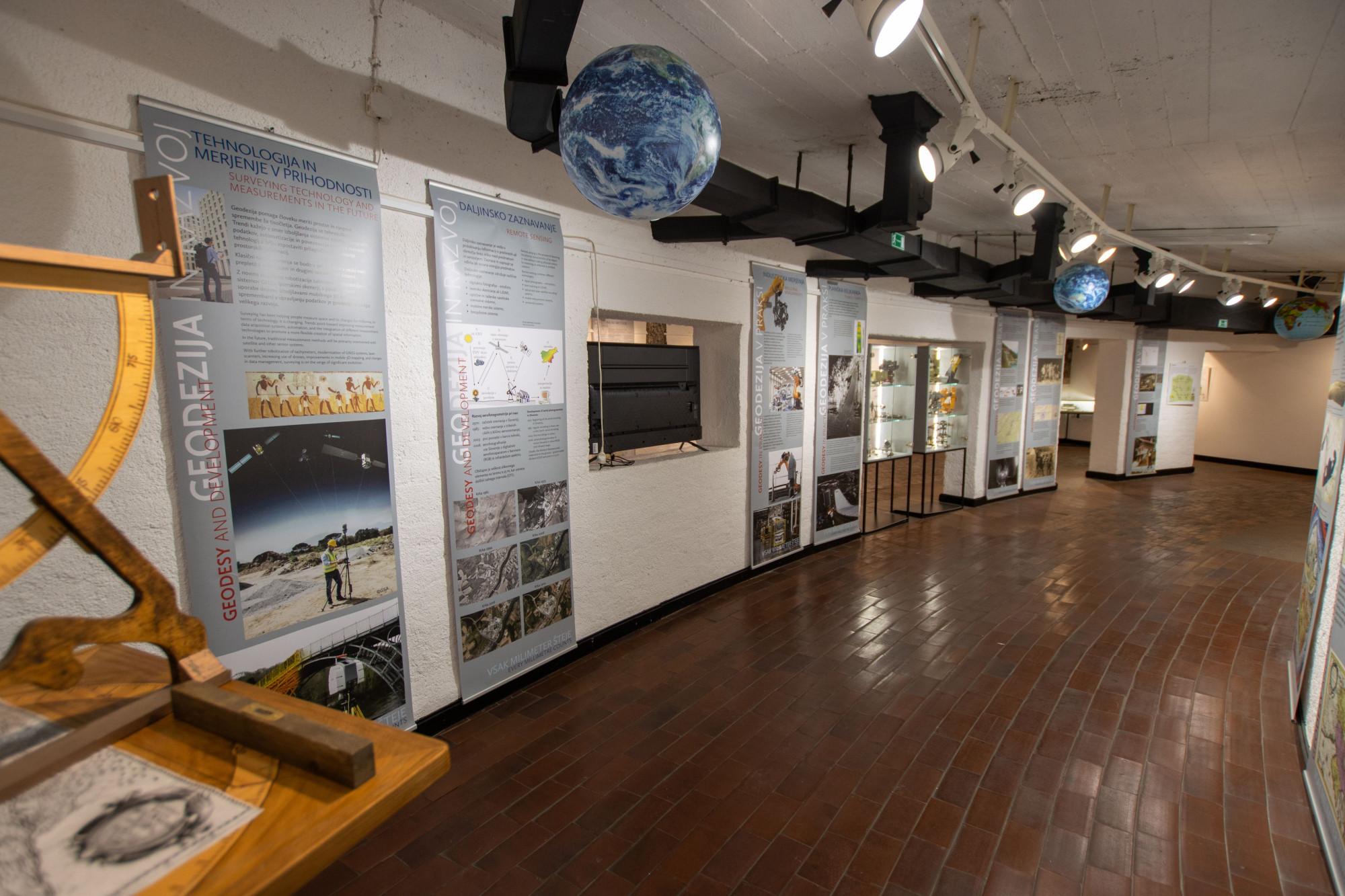 Razstava obsega več panojev, kjer je predstavljena zgodovina geodetske stroke, metode merjenja, kartografija, zemljiški kataster, geodezija in suverenost države, znanost in razvoj ter primeri geodetske stroke v praksi. V vitrinah je razstavljenih več kot 20 geodetskih instrumentov in drugih muzejskih predmetov, vključuje pa tudi multimedijske prikaze in 3D interaktivno predstavitev vsebin. Z ambientalnim prikazom je predstavljen tudi Janez Vajkard Valvasor, ki je imel pomembno vlogo pri razvoju kartografije. Razstavo je pripravil Tehniški muzej Slovenije v sodelovanju z Geodetsko upravo, Zvezo geodetov Slovenije in Oddelkom za geodezijo Fakultete za gradbeništvo in geodezijo.
