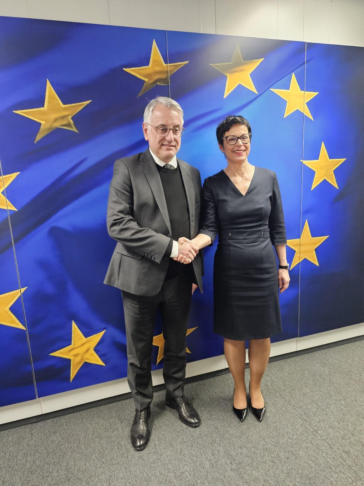 Minister Han se je Bruslju srečal tudi s slovenskimi poslanci v Evropskem parlamentu mag. Matejem Toninom, Marjanom Šarcem, Matjažem Nemcem, Zalo Tomašič in dr. Vladimirjem Prebiličem. V pogovoru so se dotaknili aktualnega dogajanja v EU in svetu. Strinjali so se, da je na ravni EU potrebno poenotenje držav članic glede zelenega prehoda in investicij v varnost.