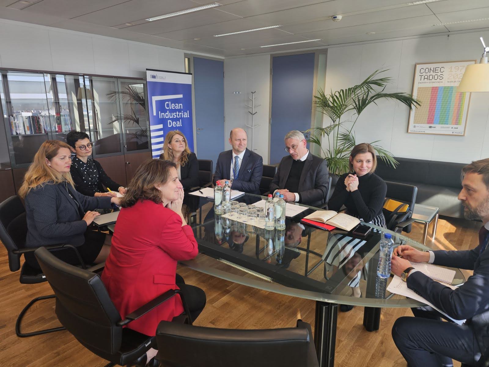 Z izvršno podpredsednico za čist, pravičen in konkurenčen prehod Tereso Ribera Rodríguez sta izmenjala poglede o posodobitvi pravil o konkurenci, z namenom doseči bolj konkurenčno EU, ki bo evropskim podjetjem omogočila uspešno konkuriranje na svetovnem trgu. Dotaknila sta se tudi vprašanja, kako povezati nova pravila o državni pomoči s cilji čistega industrijskega dogovora.