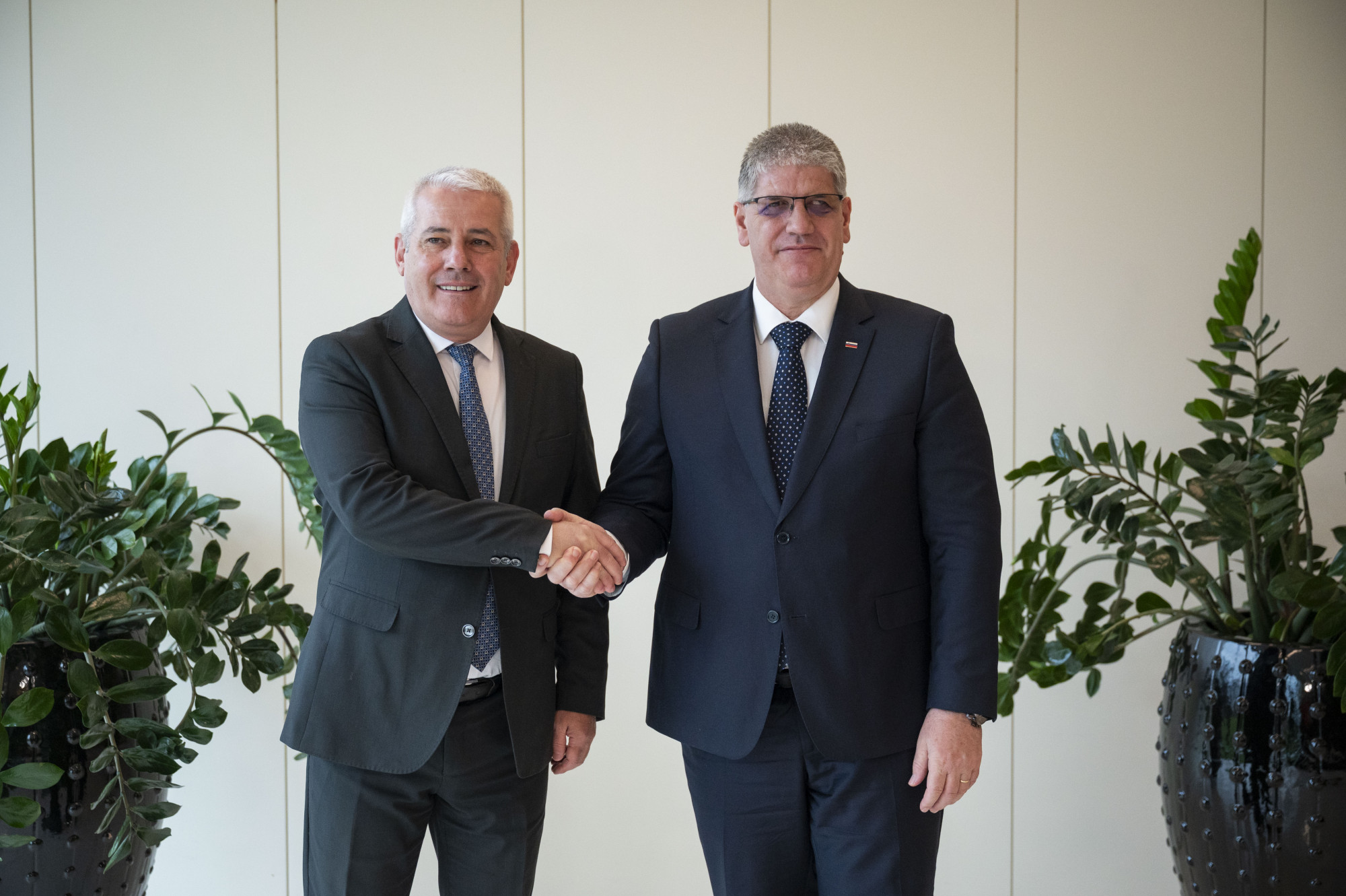 Evropski komisar za notranje zadeve in migracije Magnus Brunner in minister za notranje zadeve Boštjan Poklukar | Avtor: Boštjan Podlogar, STA