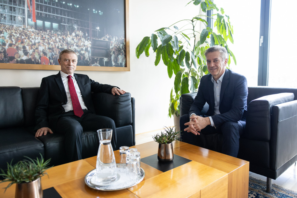 Domov Novice Premier dr. Golob se je srečal s predsednikom Ustavnega sodišča Republike Slovenije 31. 3. 2025 Predsednik Vlade Republike Slovenije Predsednik vlade dr. Robert Golob se je danes srečal s predsednikom Ustavnega sodišča dr. Rokom Čeferinom. Predsednik vlade dr. Robert Golob in predsednik Ustavnega sodišča dr. Rok Čeferin | Avtor: Žan Kolman/KPV Sogovornika sta poseben poudarek namenila nekaterim ustavnim spremembam, ki se nanašajo na položaj Ustavnega sodišča.