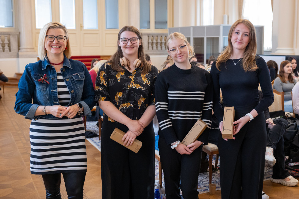 Dijakinje, ki so dosegle najboljše rezultate na kvizu, so prejele simbolične nagrade. | Avtor: Bor Slana/STA