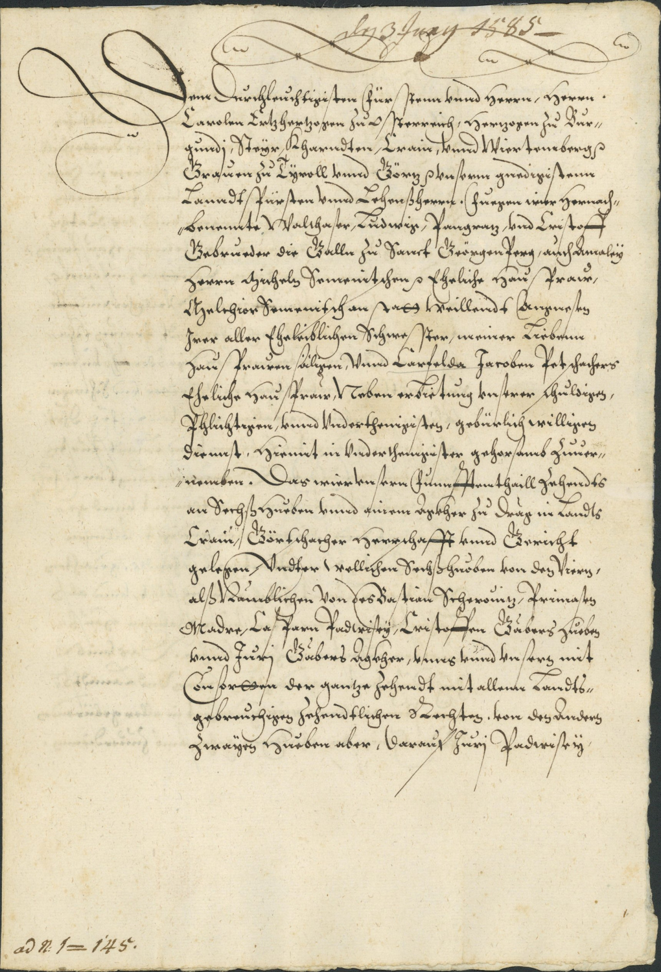 Prošnja nadvojvodi Karlu II. za prenos fevdnega imetništva po prodaji dela fevdne desetine v Dragi