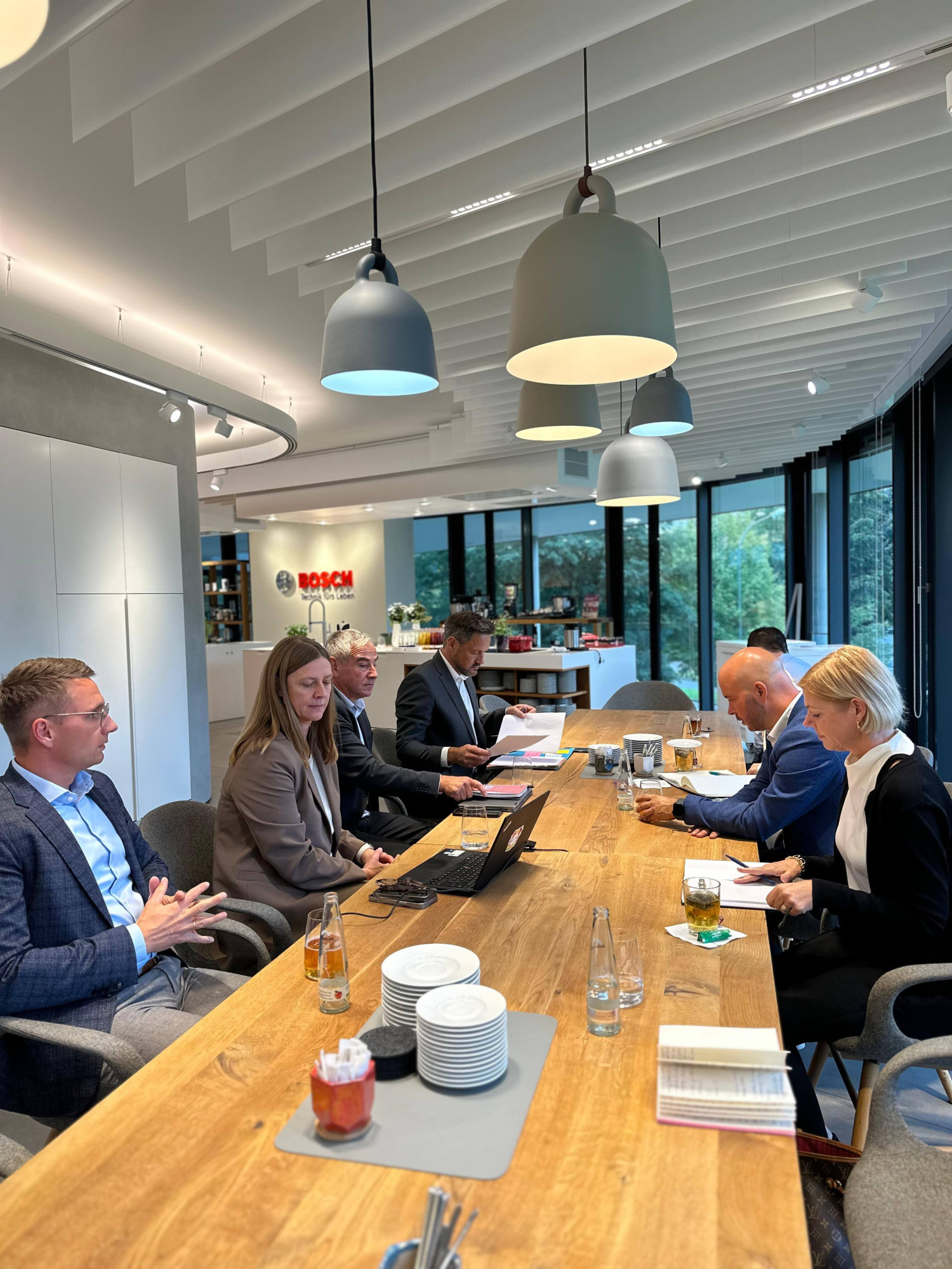 Program je nadaljeval v podjetju BSH, kjer so predstavili investicijske in razvojne načrte tovarne po poplavah avgusta 2023. Gospodarske teme so zaznamovale tudi delovno kosilo z vodstvom Združenja bavarskega gospodarstva, posvečeno gospodarskim razmeram v Nemčiji in možnostim za skupne projekte v industrijah prihodnosti.