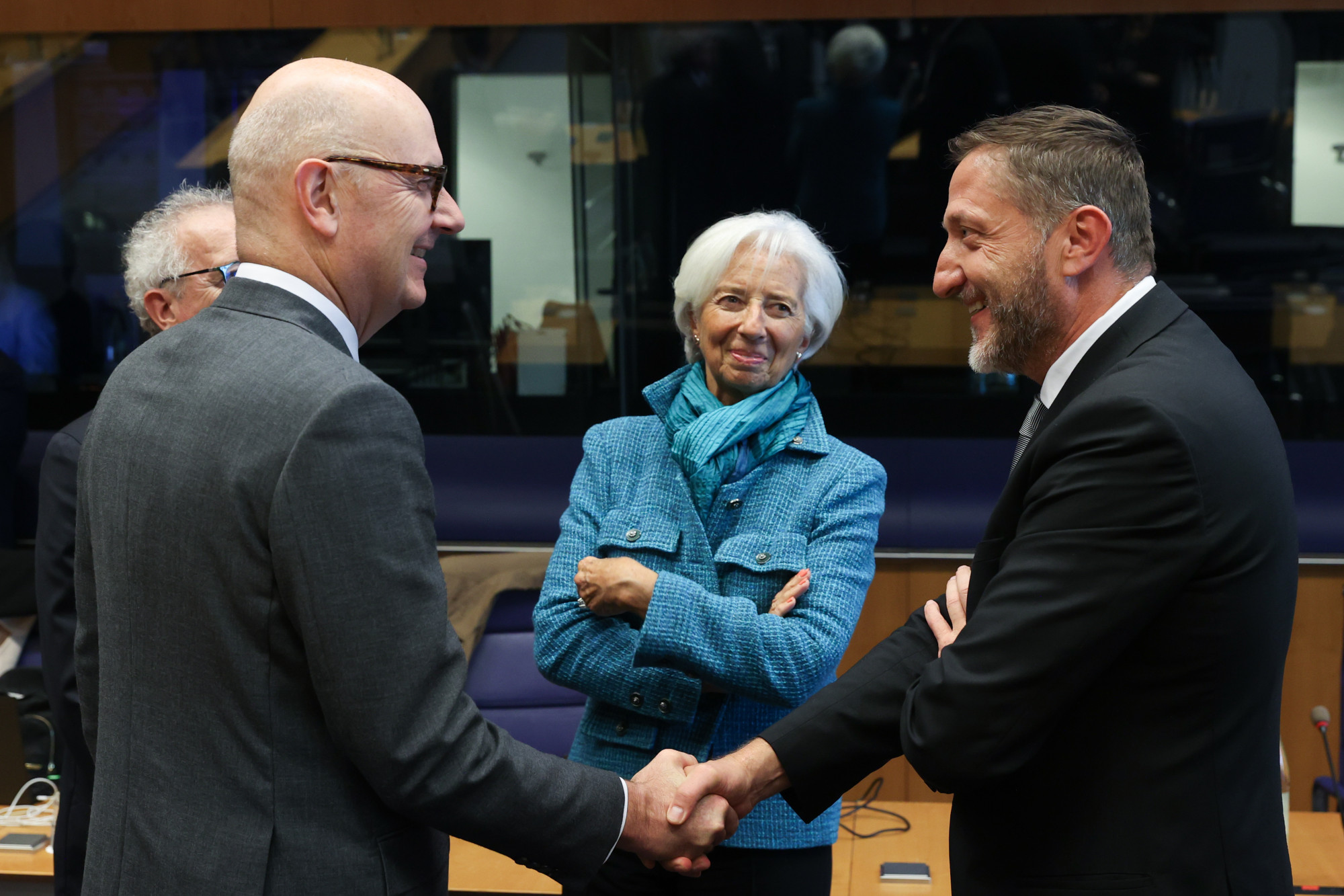Generalni direktor Evropskega mehanizma za stabilnost Pierre Gramegna, predsednik Evroskupine Paschal Donohoe, predsednica Evropske centralne banke Christine Lagarde in minister Boštjančič | Avtor: Evropska unija