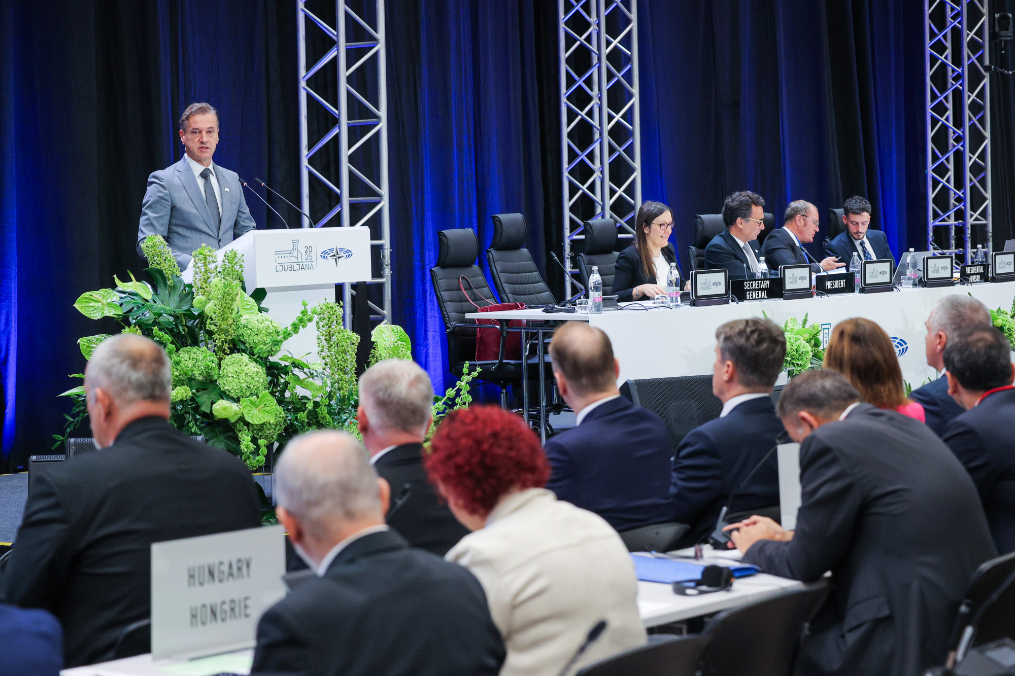 Domov Novice Premier dr. Golob: »Naša enotnost je naša največja moč« 13. 10. 2025 Predsednik Vlade Republike Slovenije Predsednik vlade dr. Robert Golob se je danes udeležil 71. zasedanja Parlamentarne skupščine Nato, ki poteka v Ljubljani. Zbrane je tudi nagovoril. Nagovor predsednika vlade | Avtor: Danijel Novakovič/STA Govor predsednika vlade GOVOR premierja dr. Goloba (pdf, 94 KB)
