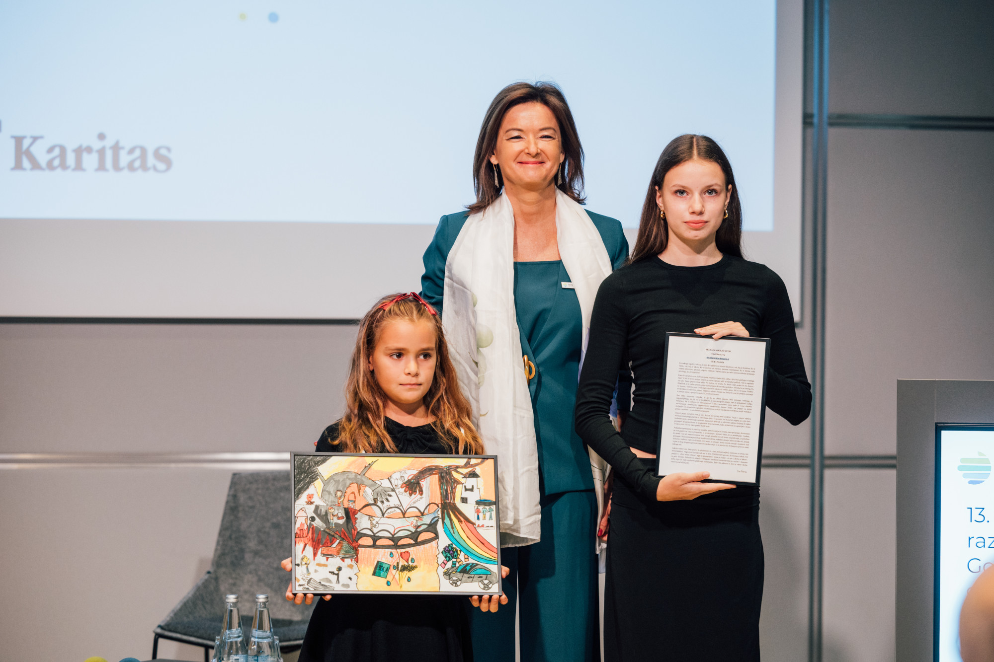 Ob robu dogodka je ministrica Fajon podelila priznanja Elli Ficko (OŠ Puconci) in Titi Žilavec (OŠ Kungota), zmagovalkama natečaja Slovenske Karitas Skupaj za boljši jutri. Mladi ustvarjalci so v svojih likovnih in literarnih delih izrazili razmišljanja o solidarnosti, boljšem jutri in skupnih prizadevanjih za pravičnejši svet.
