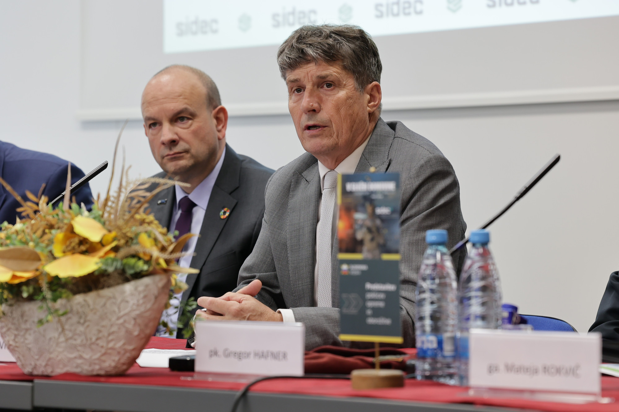 Na današnji novinarski konferenci, ki je potekala v Kongresnem centru Celjskega sejma, je Ministrstvo za obrambo Republike Slovenije skupaj s partnerji predstavilo prihajajoči mednarodni sejem obrambne industrije SIDEC 2025 | Avtor: Bruno Toič