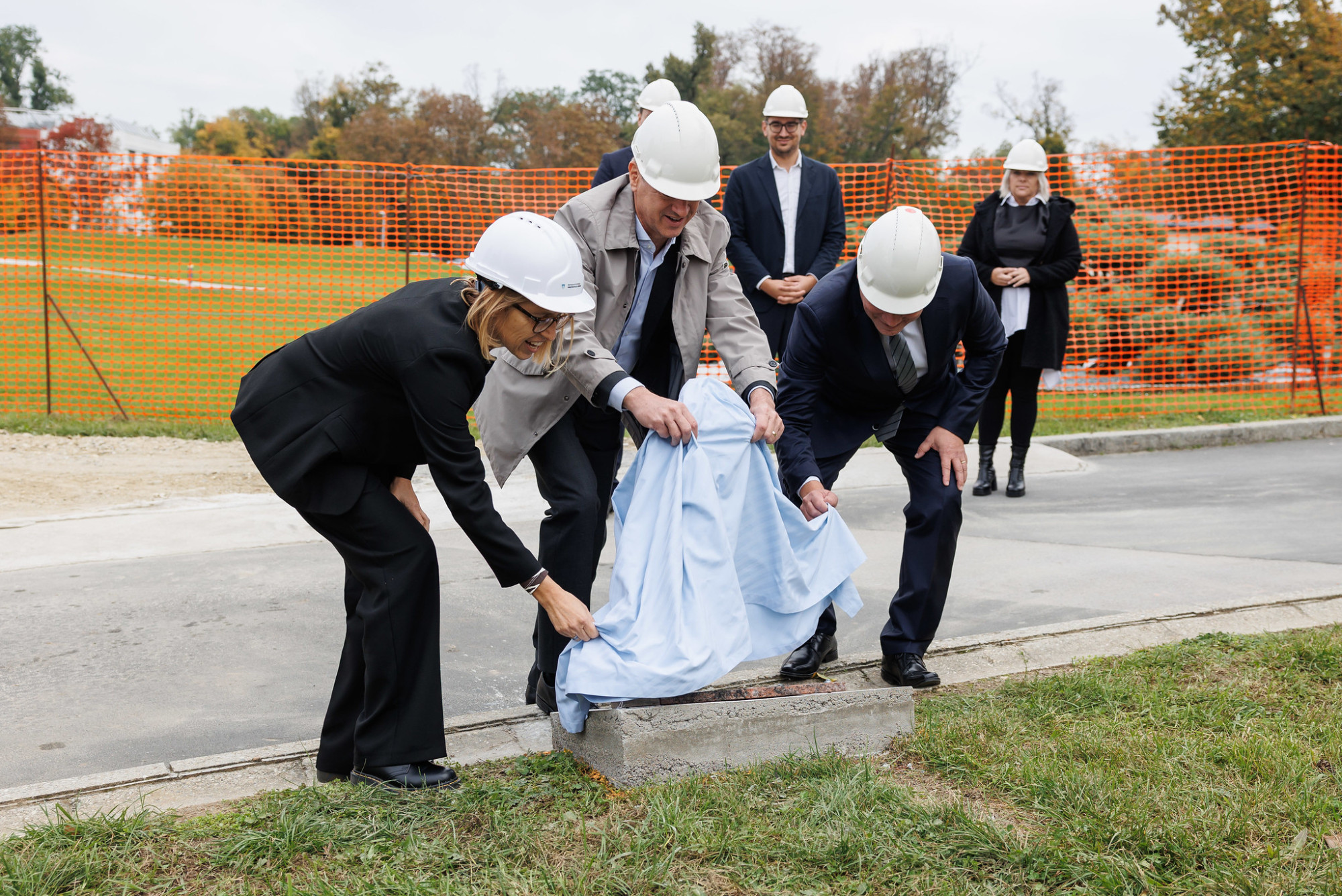 Predsednik vlade dr. Robert Golob in ministrica za zdravje Valentina Prevolnik Rupel sta si v spremstvu direktorja Romana Ratkaia ogledala začetek gradnje katetrskega laboratorija v Splošni bolnišnici Murska Sobota. | Avtor: Nebojša Tejić / STA