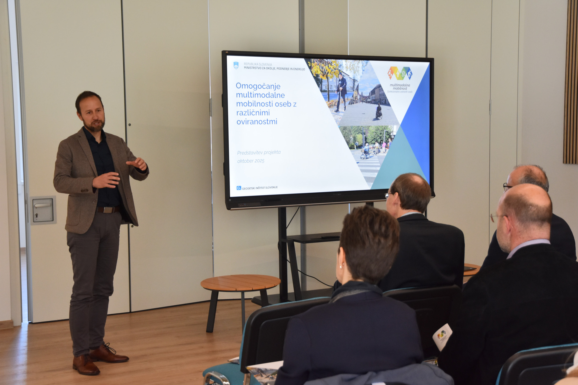 Jani Demšar strokovni sodelavec na GI je predstavil potek standardiziranega zajema podatkov o dostopnosti in poudaril pomen vzdrževanja podatkov. Pojasnil je, da projekt temelji na sodelovanju in vključevanju uporabnikov z oviranostmi tako pri zajemu, kot tudi pri vzdrževanju. Ob tem je izpostavil pogosto zastavljeno vprašanje: kaj potrebujejo osebe z MDR. Kot primer je navedel trajanje zelene luči na semaforjih, ki mora biti prilagojena tempu uporabnikov: »Za osebe z motnjami v duševnem razvoju je zelo pomembno, koliko časa traja zelena luč na semaforju, saj ta določa, koliko časa imajo za varno prečkanje ceste. To ne koristi le tej skupini, temveč tudi starejšim in staršem z majhnimi otroki – skratka vsem.« Demšar je še poudaril, da je prav ta primer dober pokazatelj, da dostopnost izboljšuje kakovost življenja vseh prebivalcev, ne le oseb z oviranostmi.