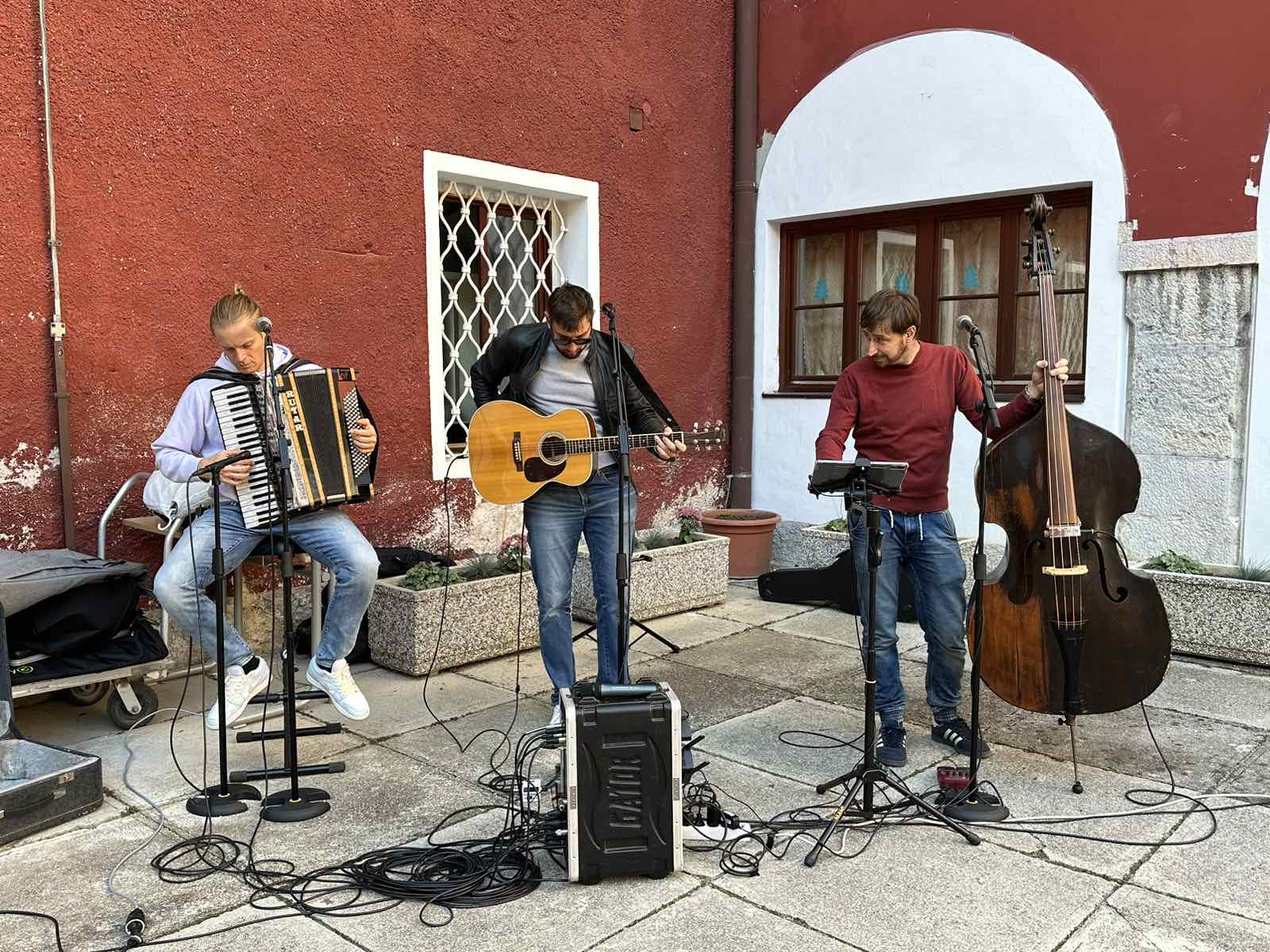 Vzdušje se je še dodatno dvignilo ob nastopu ansambla Aufbiks, kjer so trije člani skupine s pozitivno energijo in s pomočjo harmonike, kontrabasa in kitare ustvarili prijeten ambient ter mnogim pričarali trenutek notranjega miru.